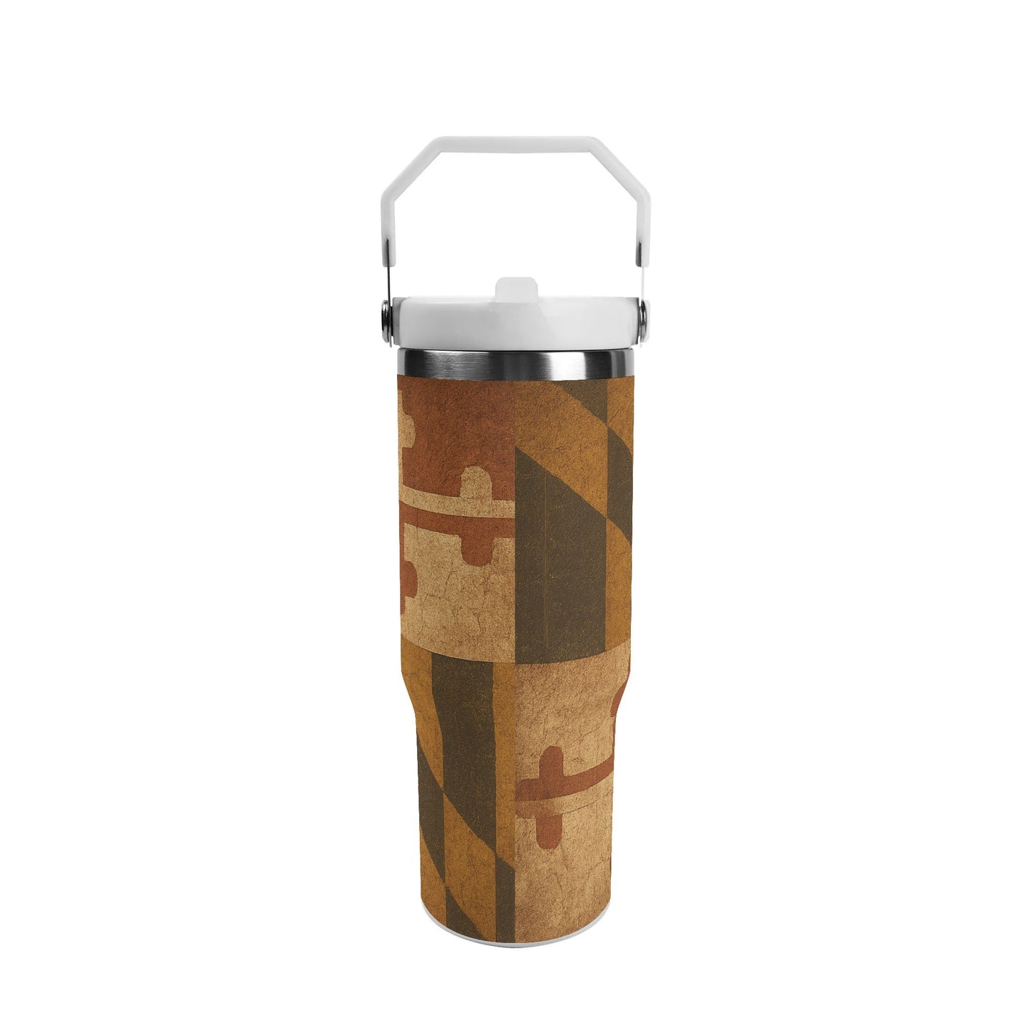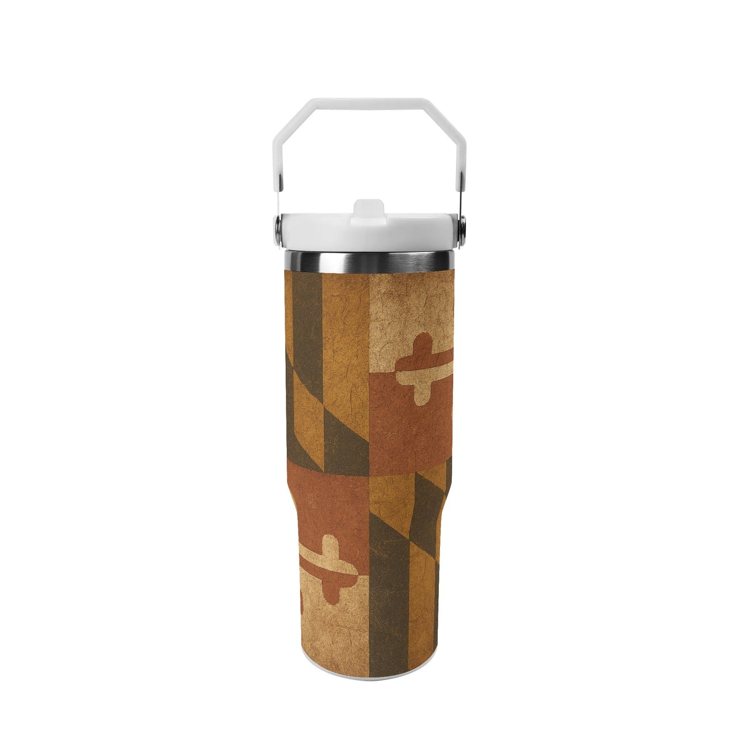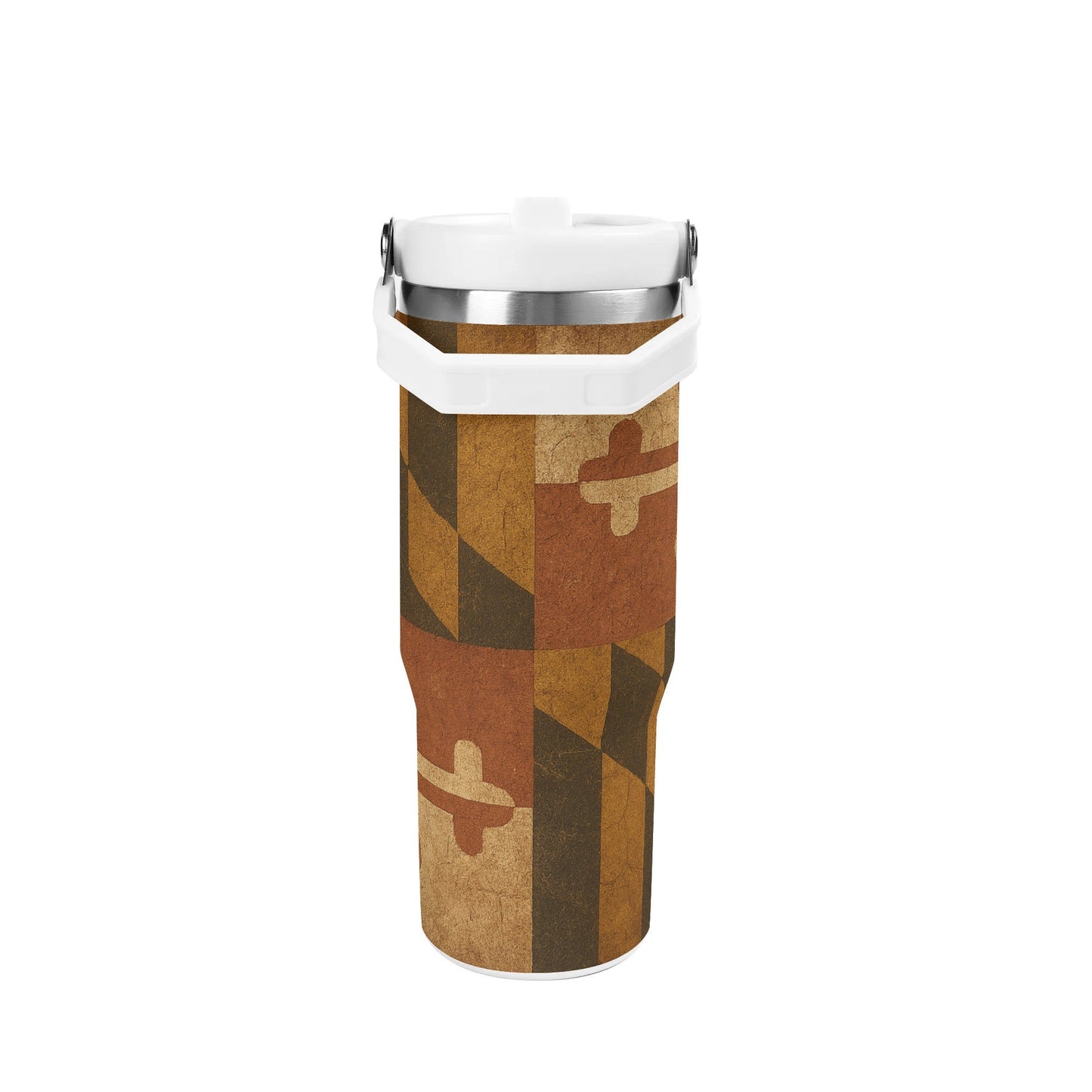 - Patriotic Design: Bold geometric patterns and cross motifs in the iconic Maryland flag colors make this tumbler a standout piece of American heritage