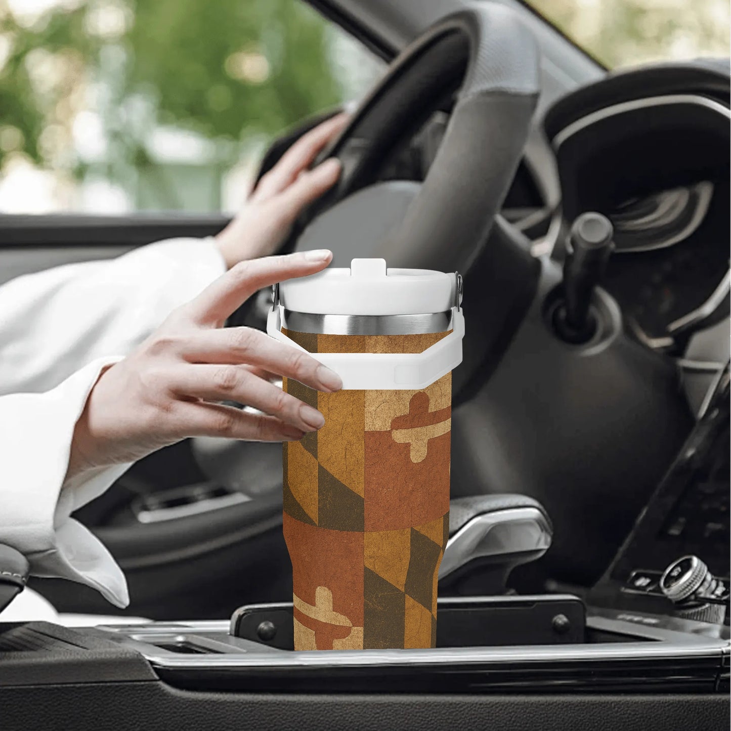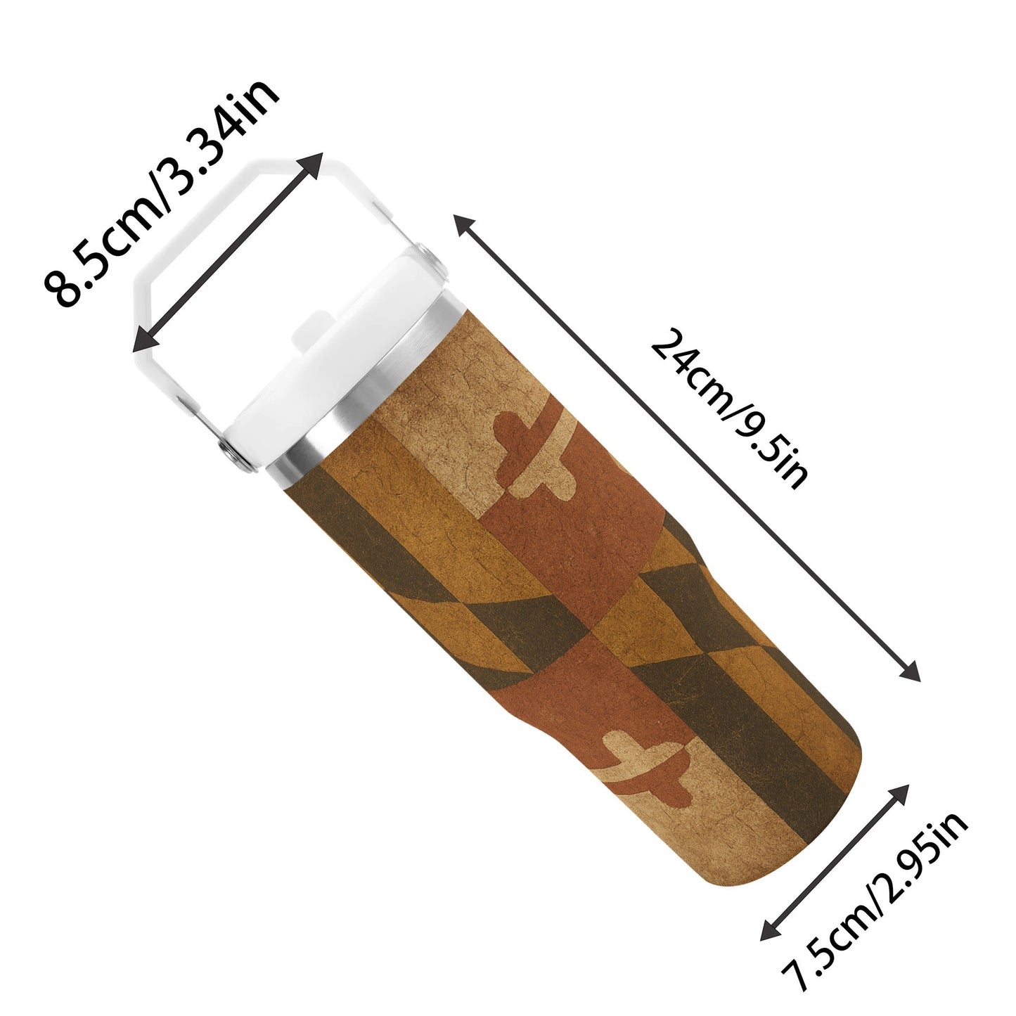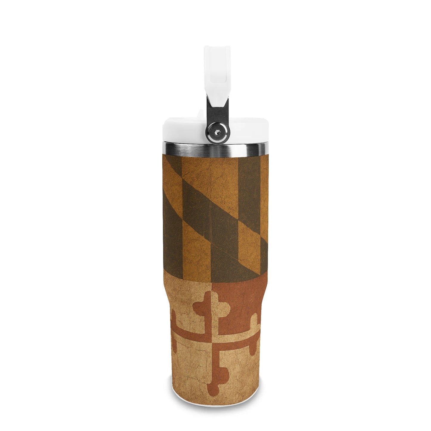 - Patriotic Design: Bold geometric patterns and cross motifs in the iconic Maryland flag colors make this tumbler a standout piece of American heritage