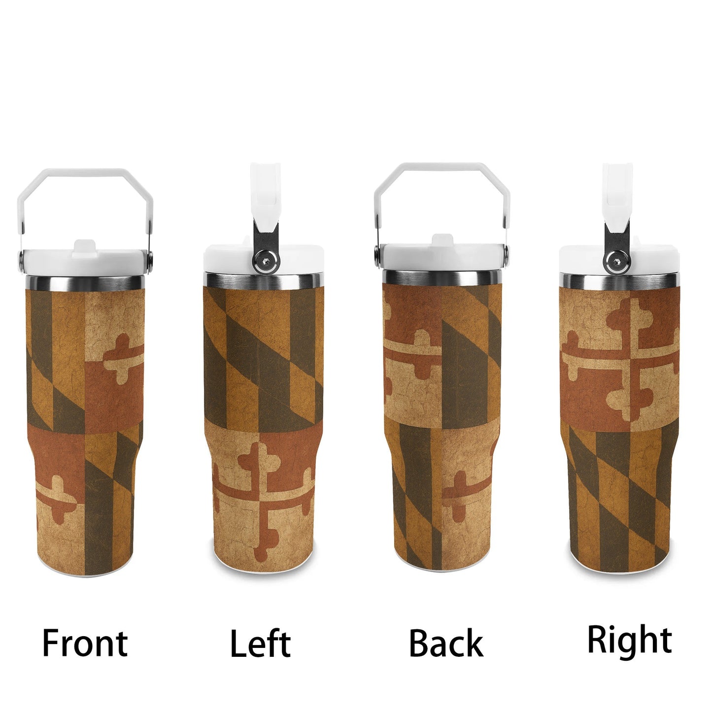 30oz Maryland Flag Stainless Steel Tumbler with Full Wrap Print - Colonial Revival Design for Car Cup Holders & Travel