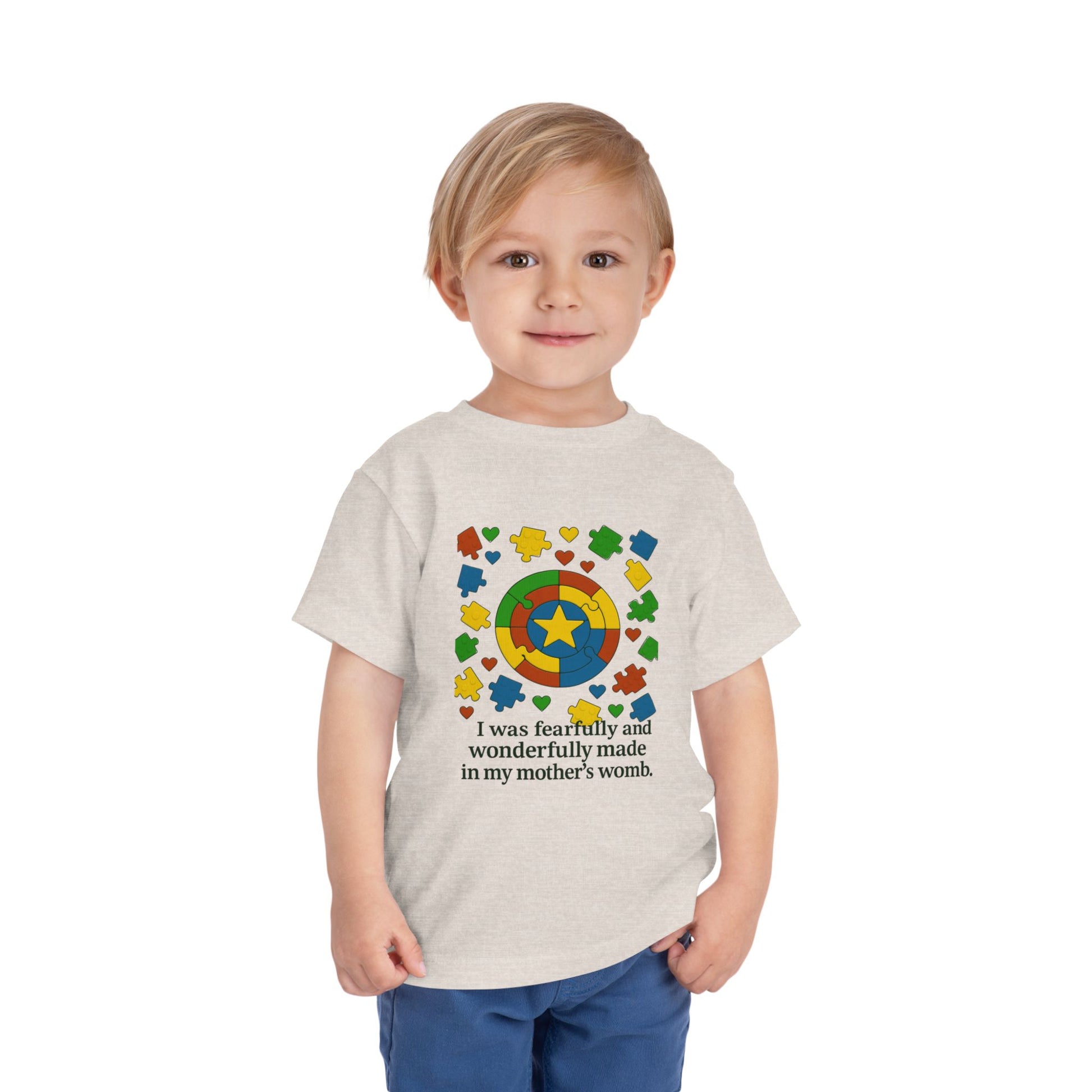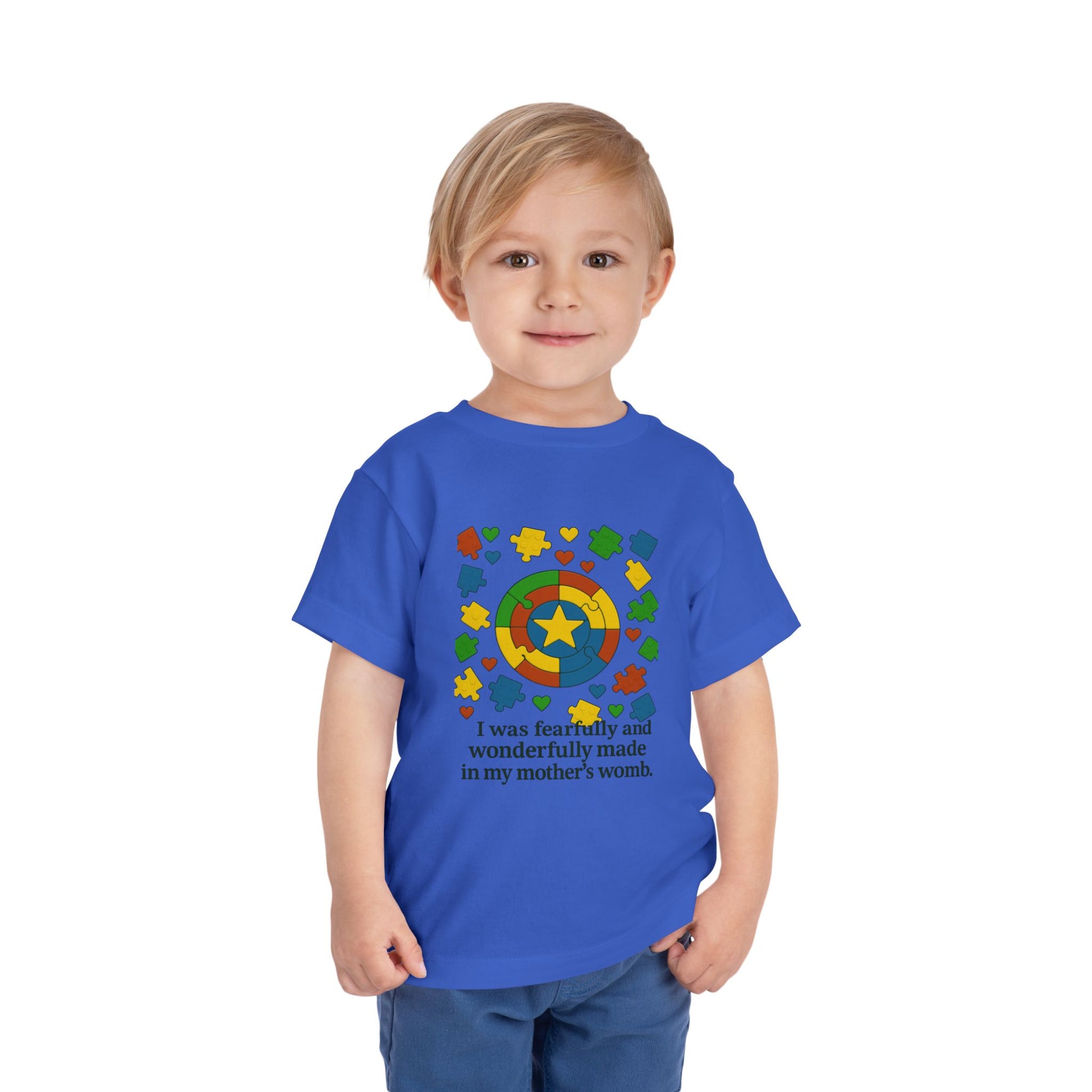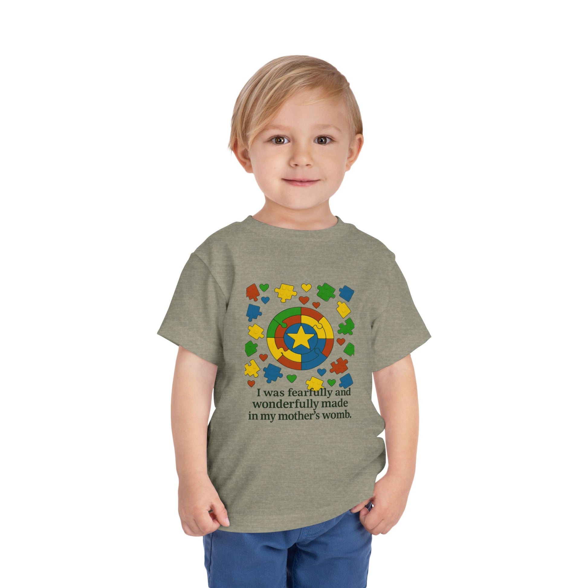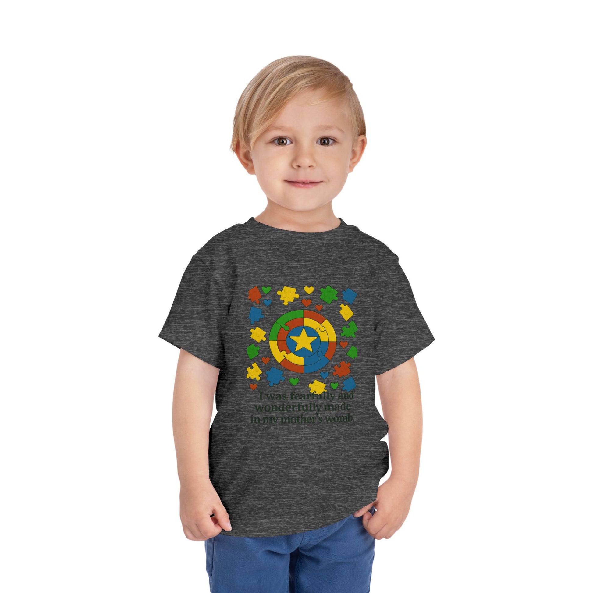 Autism Inspirational Tee - 'Fearfully and Wonderfully Made' - Toddler T-Shirt - Cute Gift for Kids, Baby Shower, Religious Celebrations