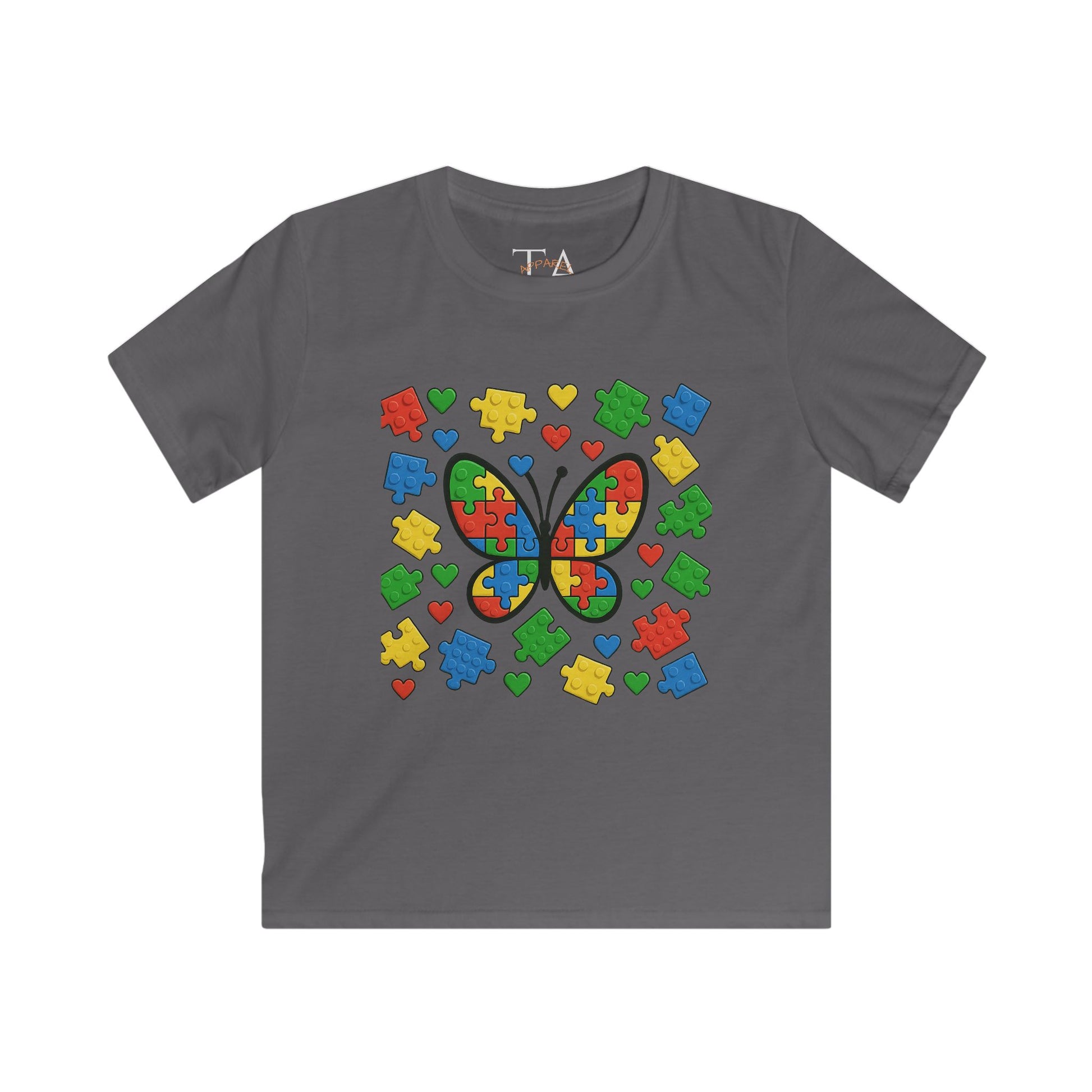 This Autism Lego Puzzle Colorful Butterfly Tee is a fun and vibrant shirt perfect for kids to wear during the summer. It promotes Autism awareness and is a great gift idea for birthdays. This casual wear is ideal for girls who love bright and colorful designs.