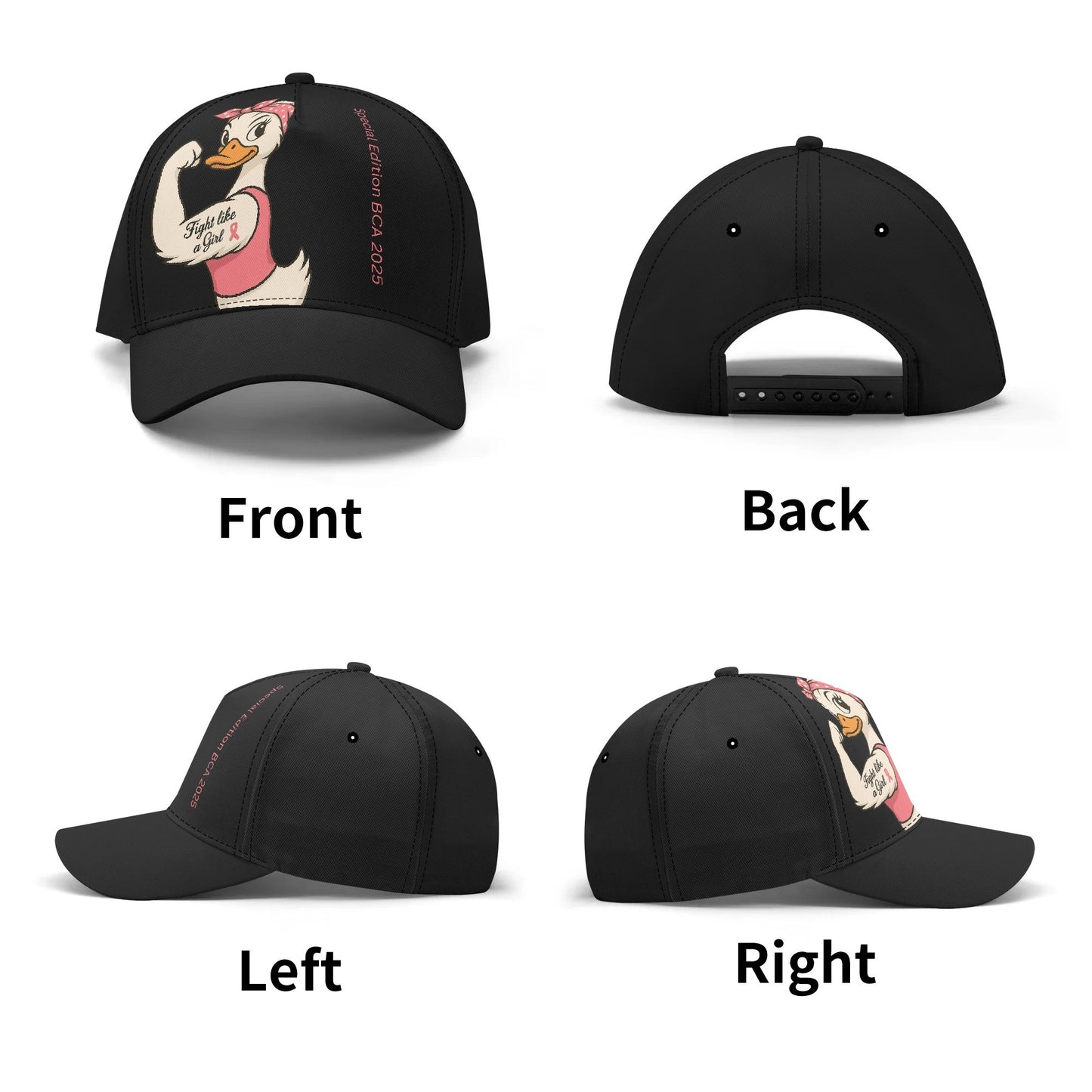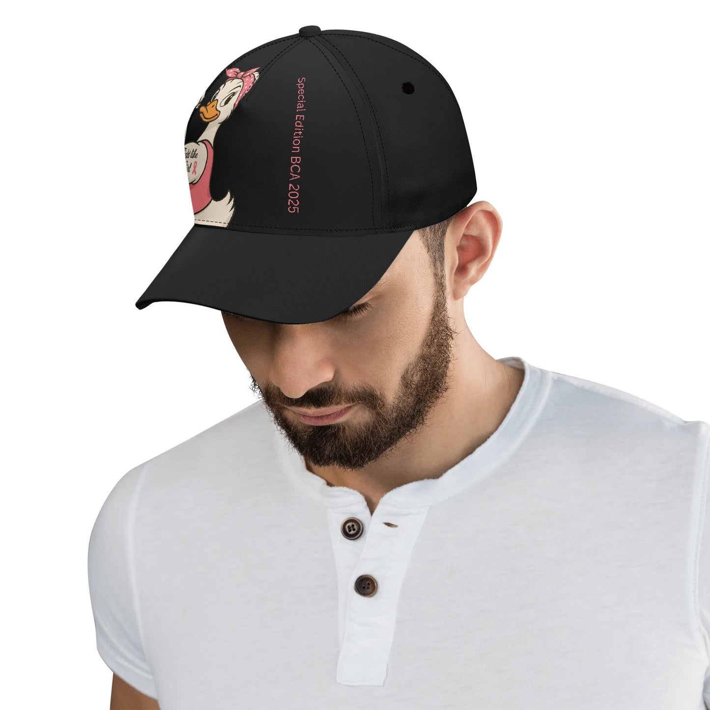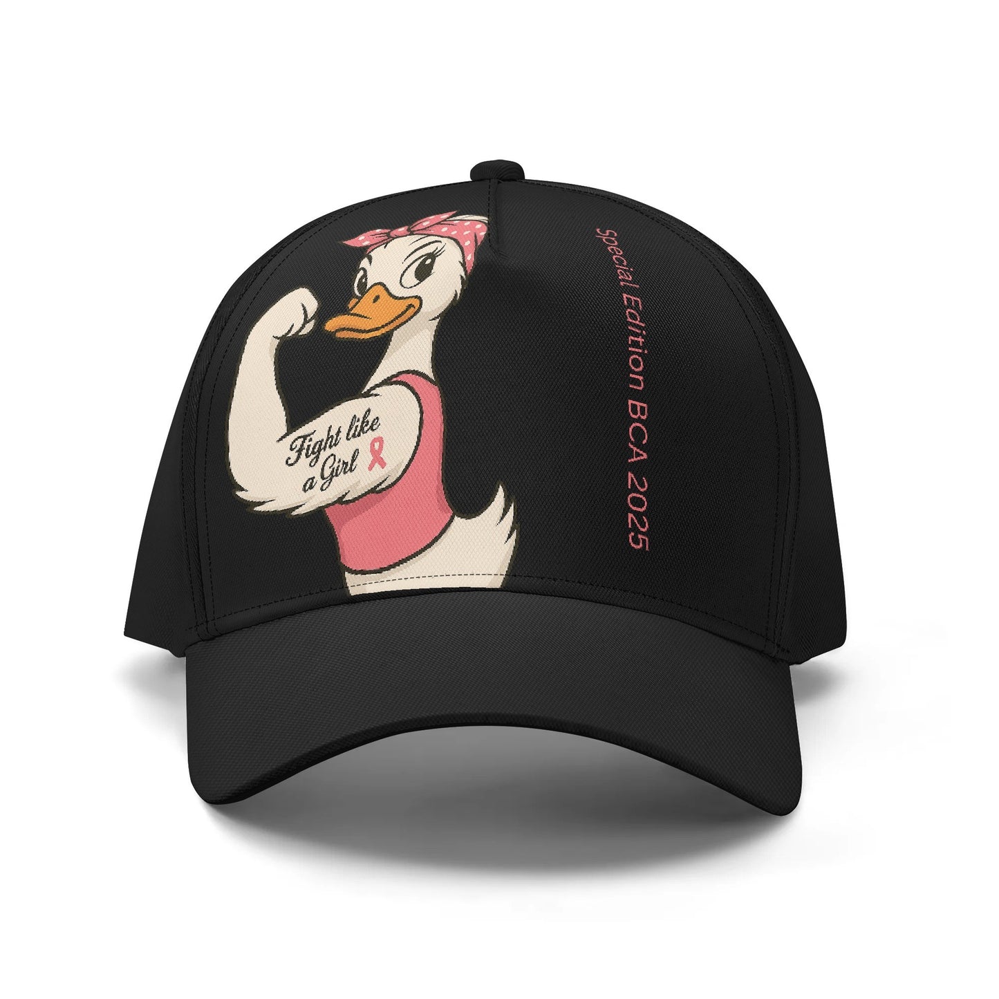 Breast Cancer Awareness Baseball Hat - Feminist Duck Design & Pink Ribbon, 7-Panel Structured Cap for Outdoor & Casual Wear