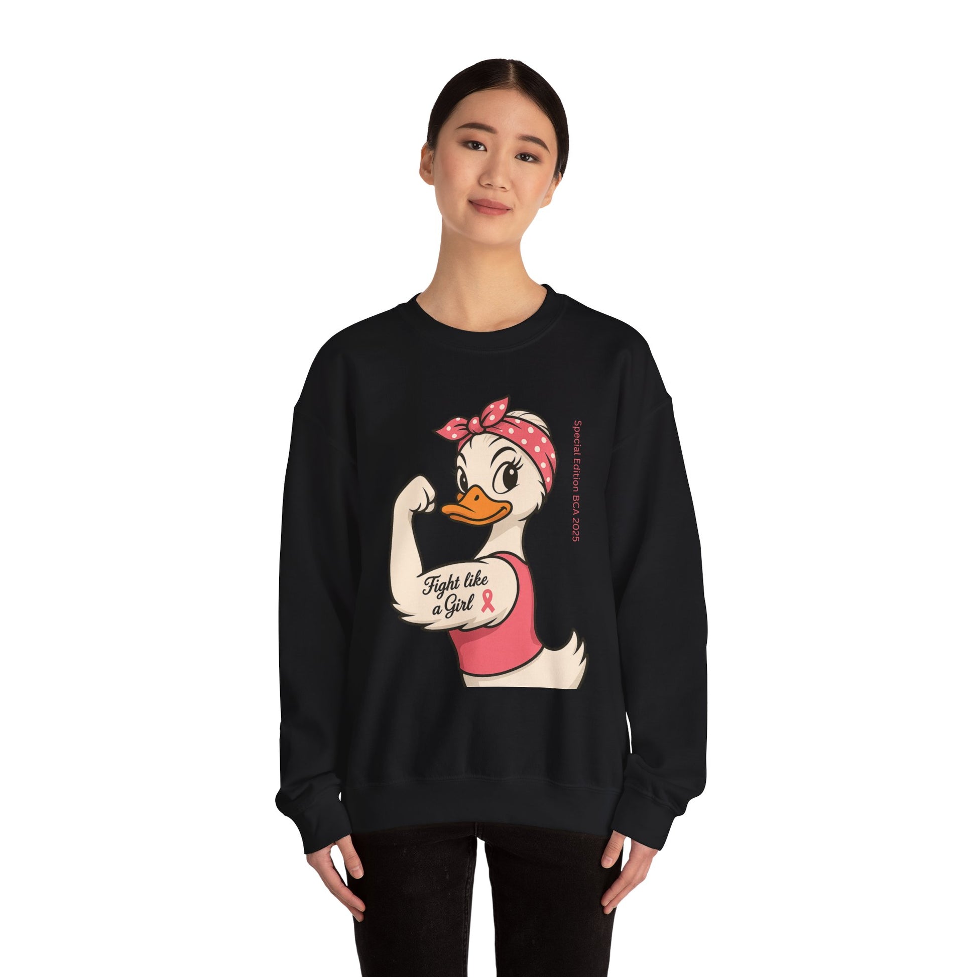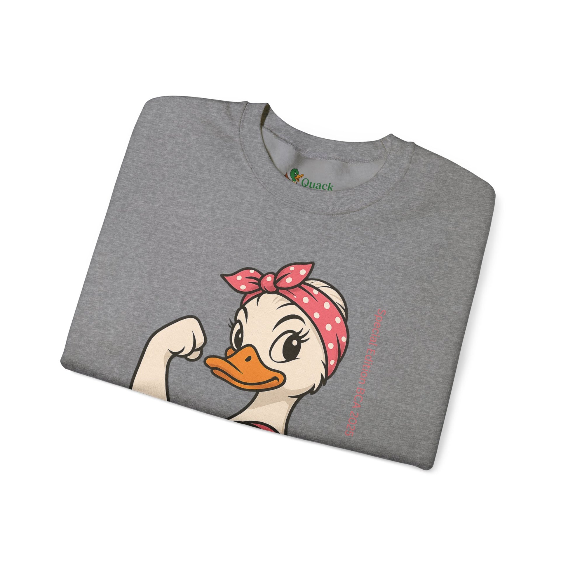 Breast Cancer Awareness Fight Like a Girl Duck Sweatshirt - Unisex Crewneck, Roxie the Riveter Empowerment, Gift for Her, Feminist Apparel,