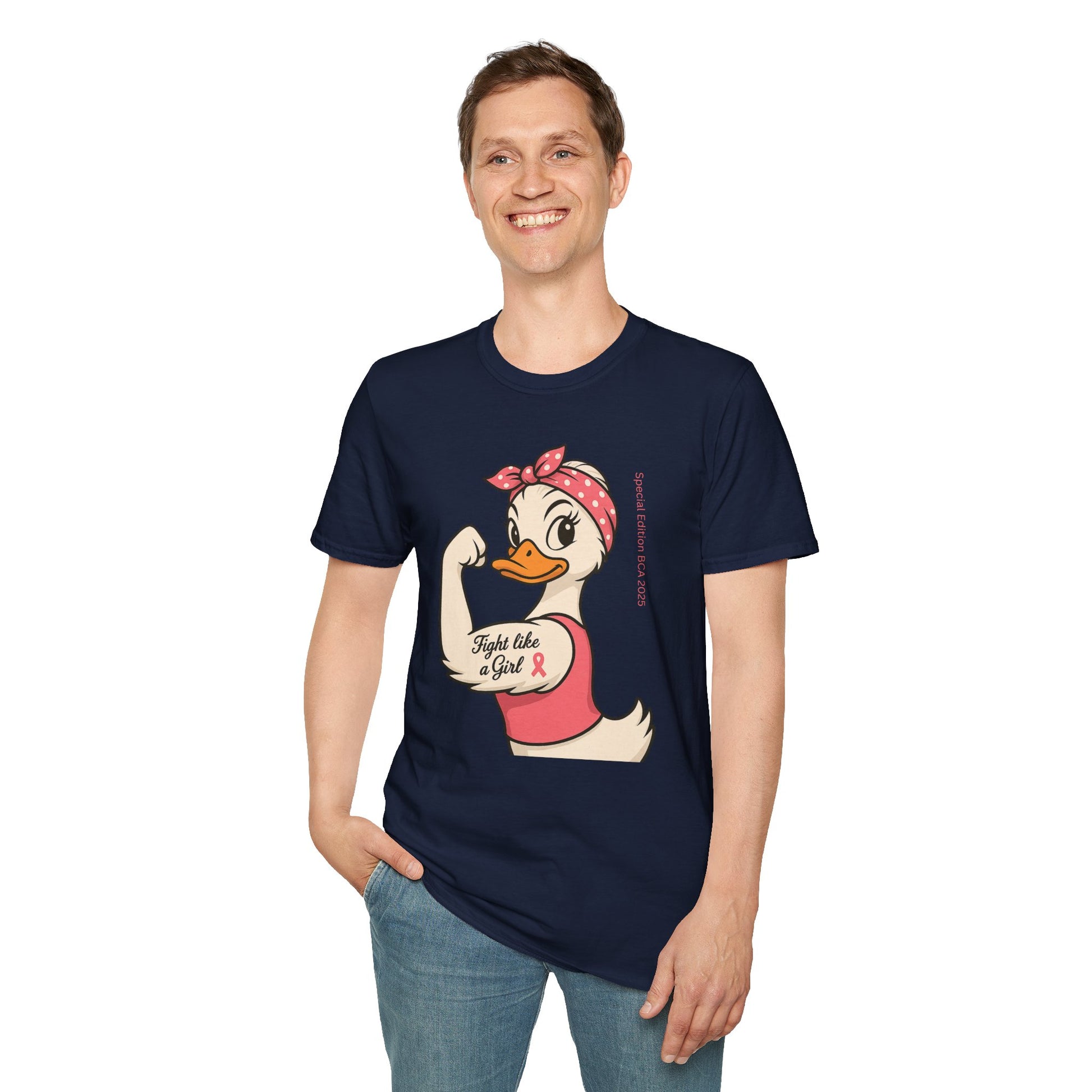 Breast Cancer Awareness Fight Like a Girl Duck T-Shirt, Rosie the Riveter Duck Empowerment Tee, Gift for Her, Feminist Apparel, Cute Graphic