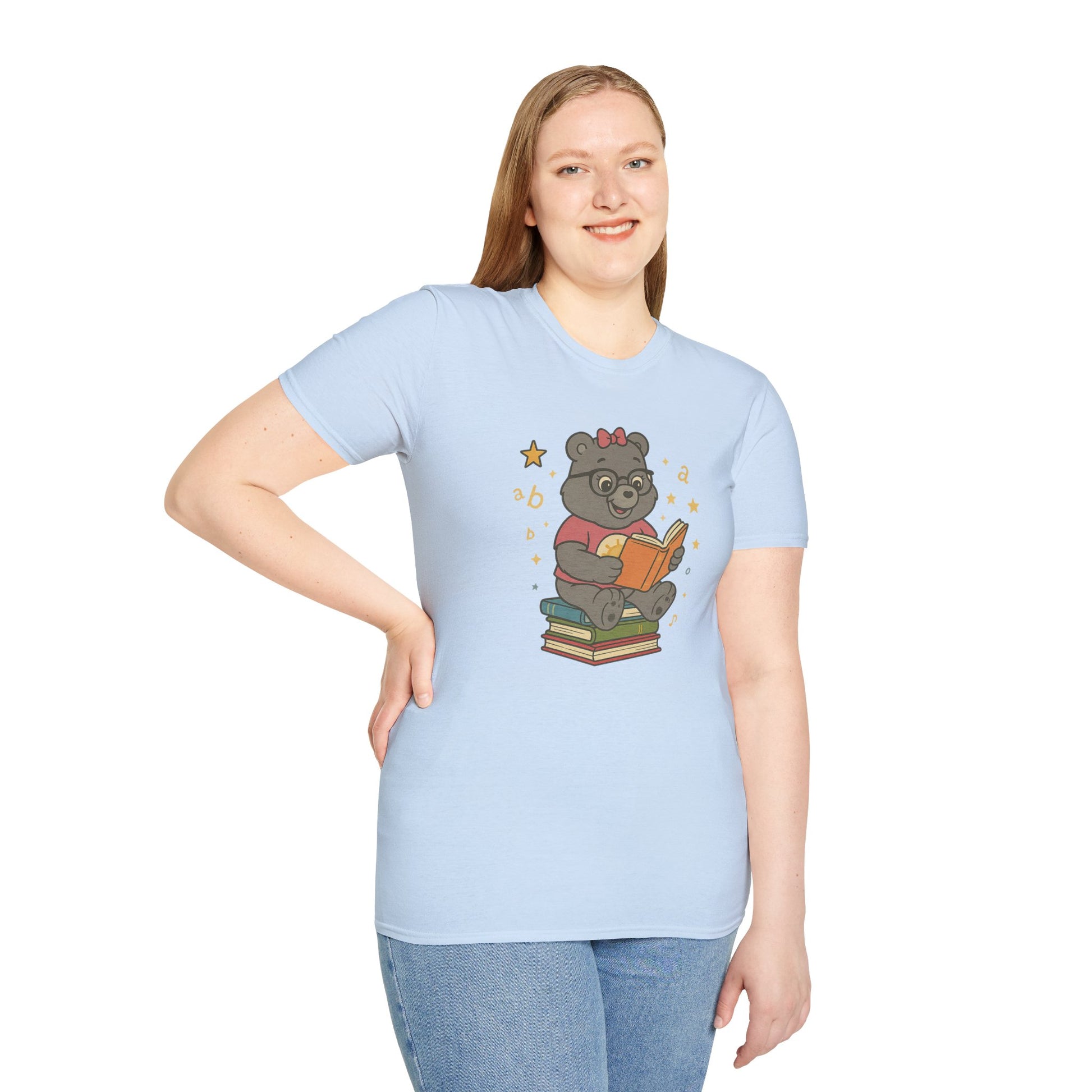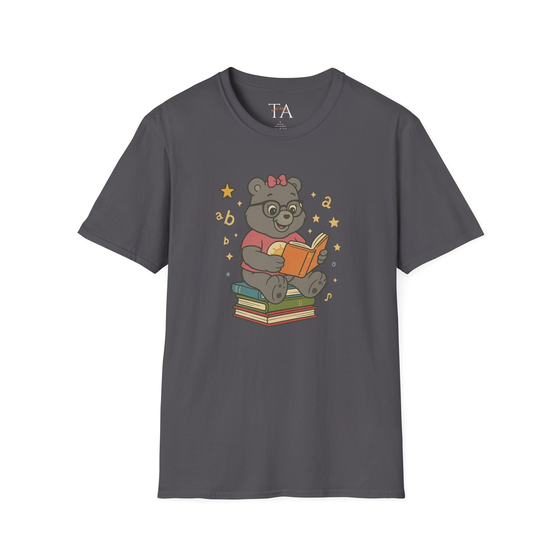 Carebear Jr Book Design Unisex Softstyle T-Shirt, Kids Graphic Tee, Children Reading Shirt, Cute Bear Illustration Top, Retro Style Apparel