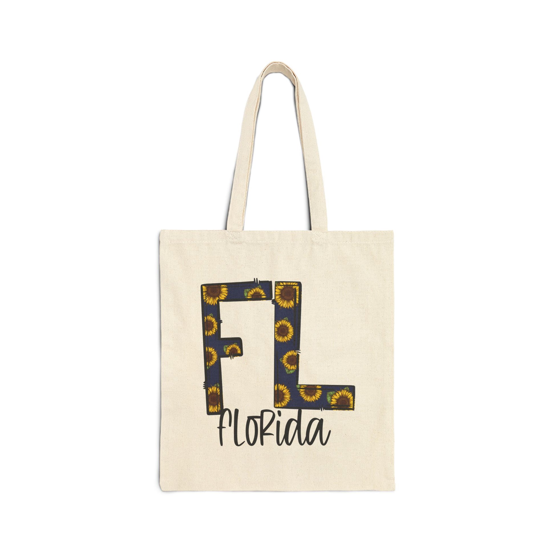 Cotton Canvas Florida Floral Tote Bag, Eco-Friendly Shopping Bag, Gift for Her, Beach Day Essentials, Travel Companion, Sunflower Print
