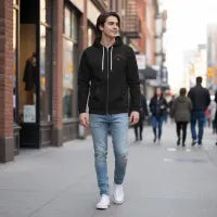 Evllilduck Mens Halloween Hoodie - Urban Streetwear Zip Up with Punk Typography Print