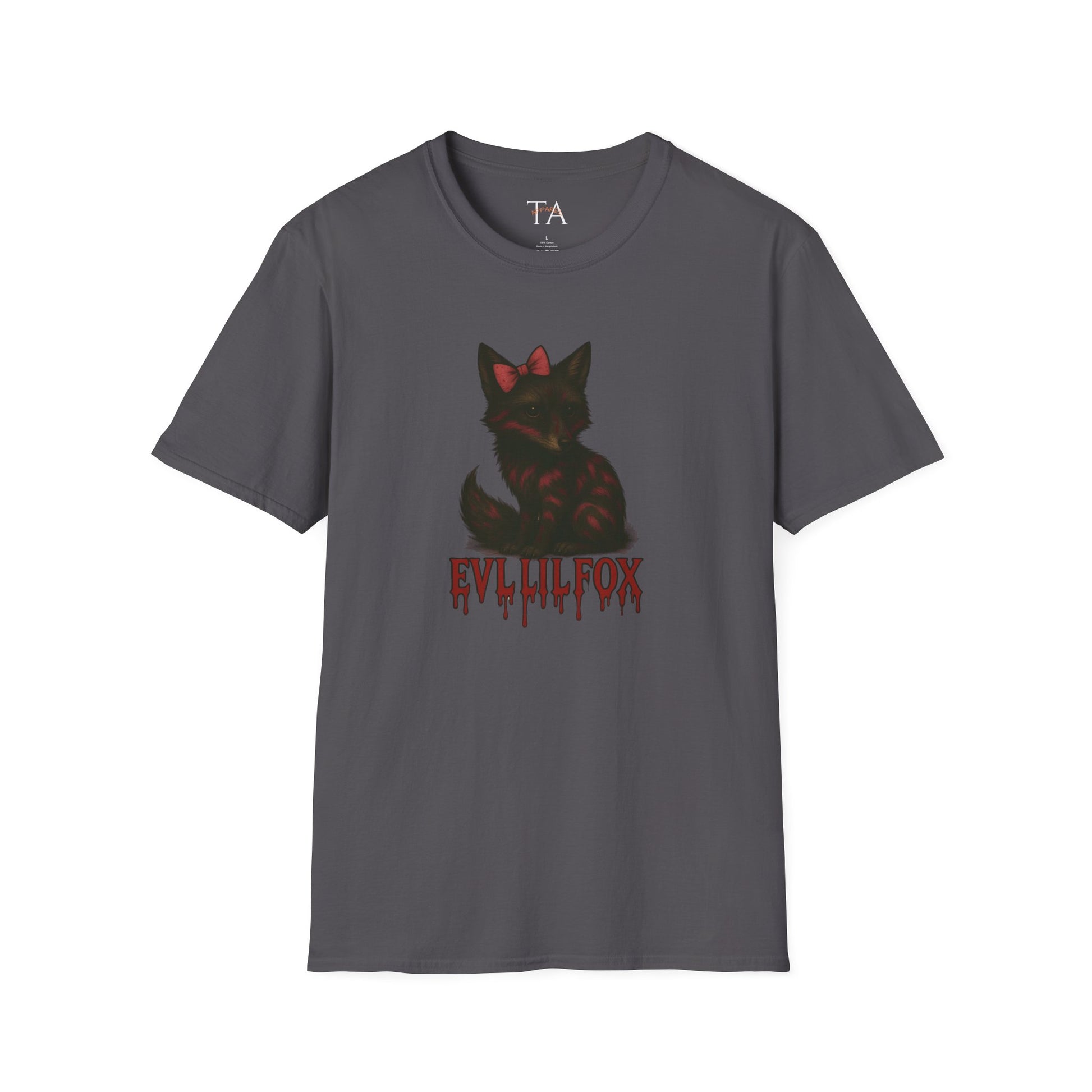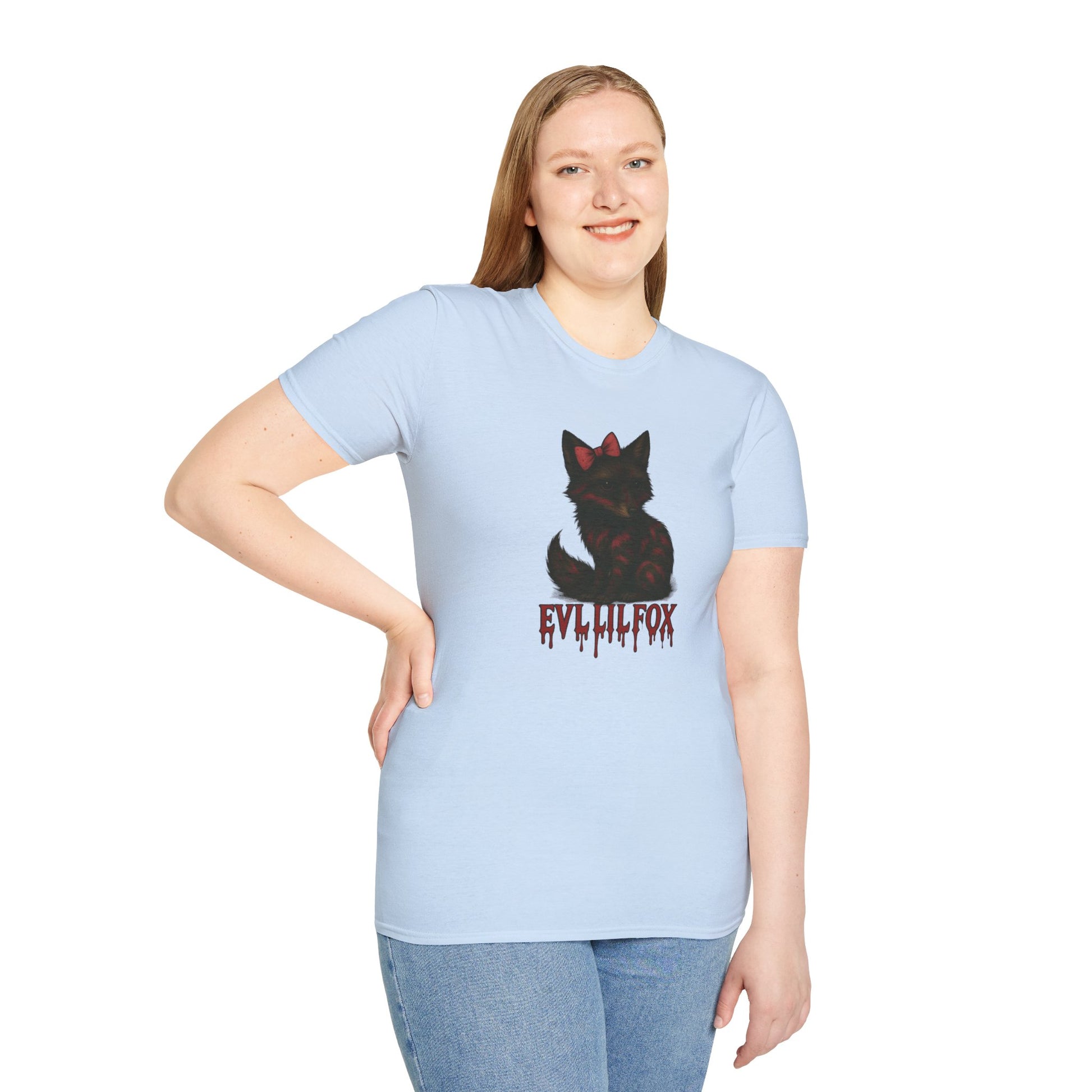 EvlLilFox T-Shirt, Unisex Graphic Tee, perfect for casual wear. Ideal Halloween gift for animal lovers, featuring a cute fox design. Versatile style suitable for various occasions, giving a trendy and comfortable vibe. Relevant to adults looking for unique graphic tees for Halloween or everyday wear.