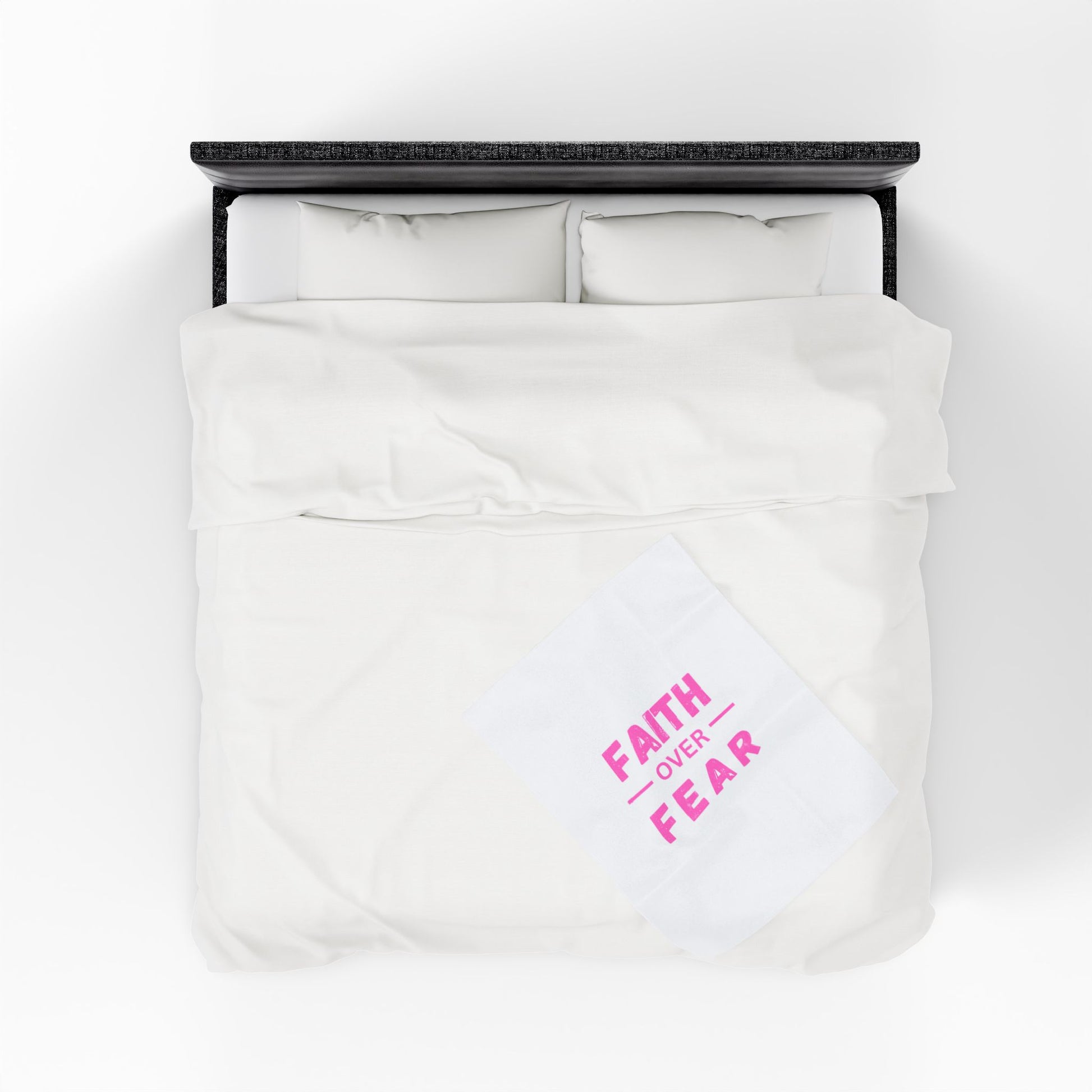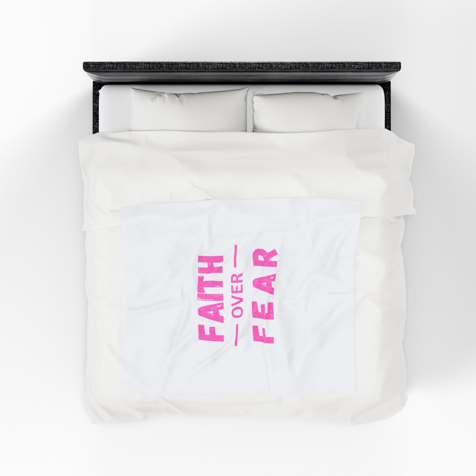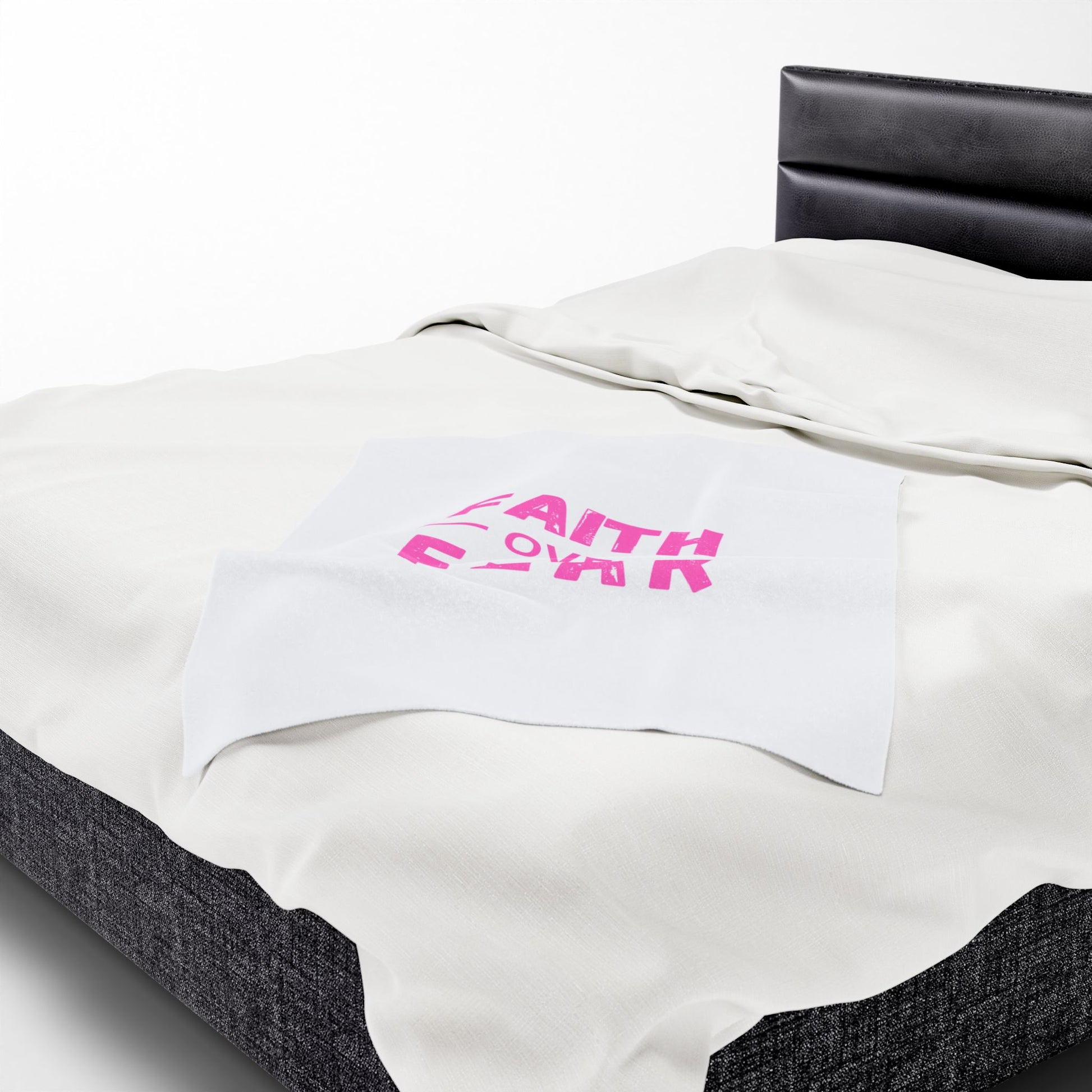 Snuggle up with our luxurious Velveteen Plush Blanket, designed to bring warmth and comfort to any space. This blanket features a powerful message, 'Faith Over Fear', making it a perfect addition to your cozy evenings at home or as a gentle reminder during your self-care routines. Ideal for anyone seeking positivity, it fits seamlessly into your life, whether cuddling on the couch, enhancing your bedroom decor, or providing comfort during moments of reflection. Perfect for holidays like Christmas, cozy nights, and gifting occasions, this blanket resonates with those who cherish uplifting mantras. Its inviting feel and warmth make it a thoughtful gift for friends or family celebrating new beginnings or facing challenges, ensuring that they always have a piece of encouragement with them.
