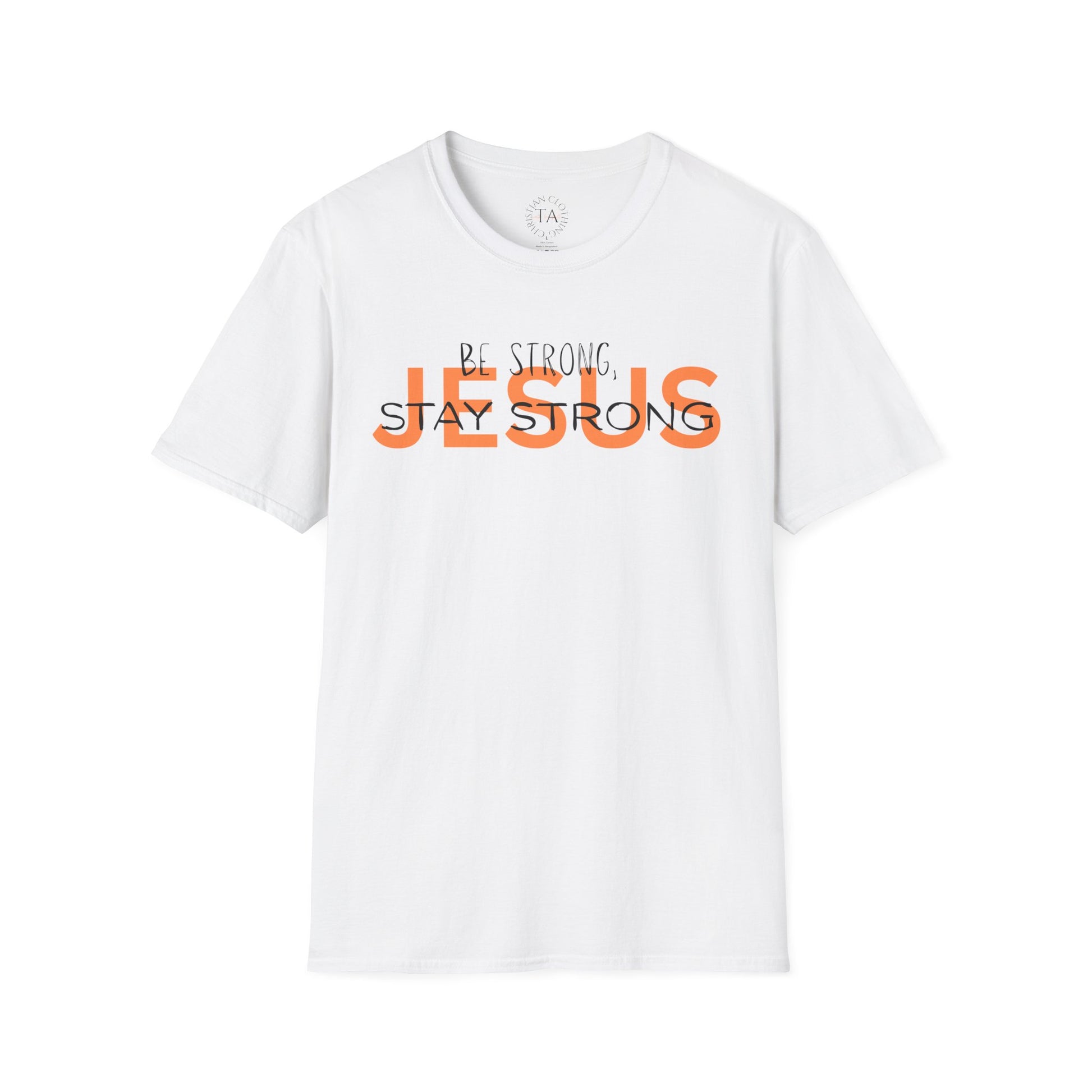 Faith-inspired t-shirt with a 'be strong, stay strong' Jesus message. This softstyle unisex t-shirt is made with 100% ring-spun cotton, offering a lightweight and durable fabric perfect for printing. The classic fit and crew neckline provide a versatile style suitable for any occasion, delivering comfort and style all year round. Ideal for adults who value faith-based messages and seek a comfortable and high-quality t-shirt for casual wear.