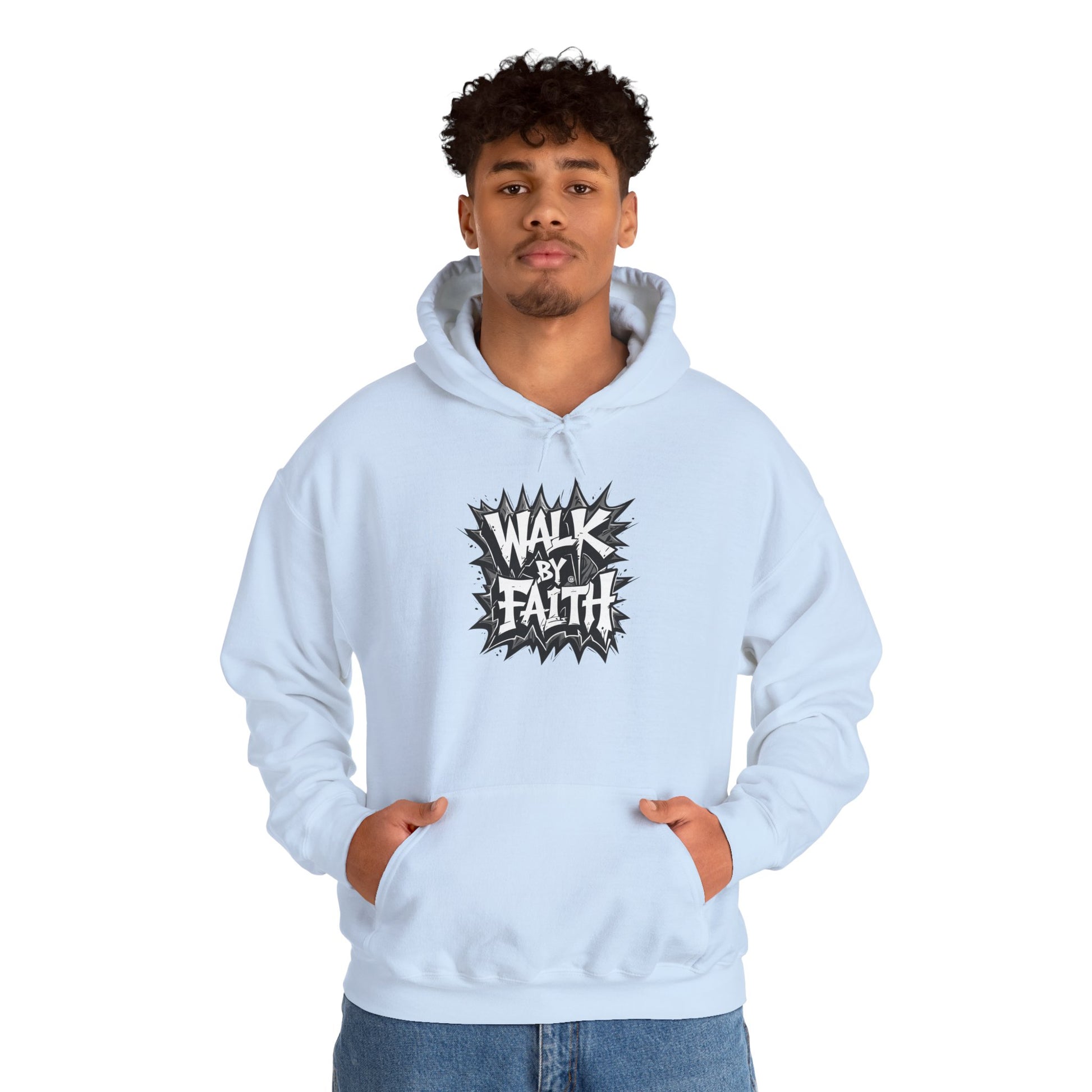 Introducing our cozy Unisex Heavy Blend™ Hooded Sweatshirt, perfect for those who cherish comfort with a message. This hoodie radiates warmth and positivity, featuring a striking "Walk by Faith" design that inspires and uplifts. Ideal for casual outings, cozy evenings, or spiritual gatherings, it effortlessly fits into any wardrobe. Perfect for everyone, particularly those who appreciate faith-based fashion or seek motivation in their everyday lives. This sweatshirt is also a thoughtful gift for holidays like Christmas, religious observances, or any celebration aimed at spreading hope and encouragement.