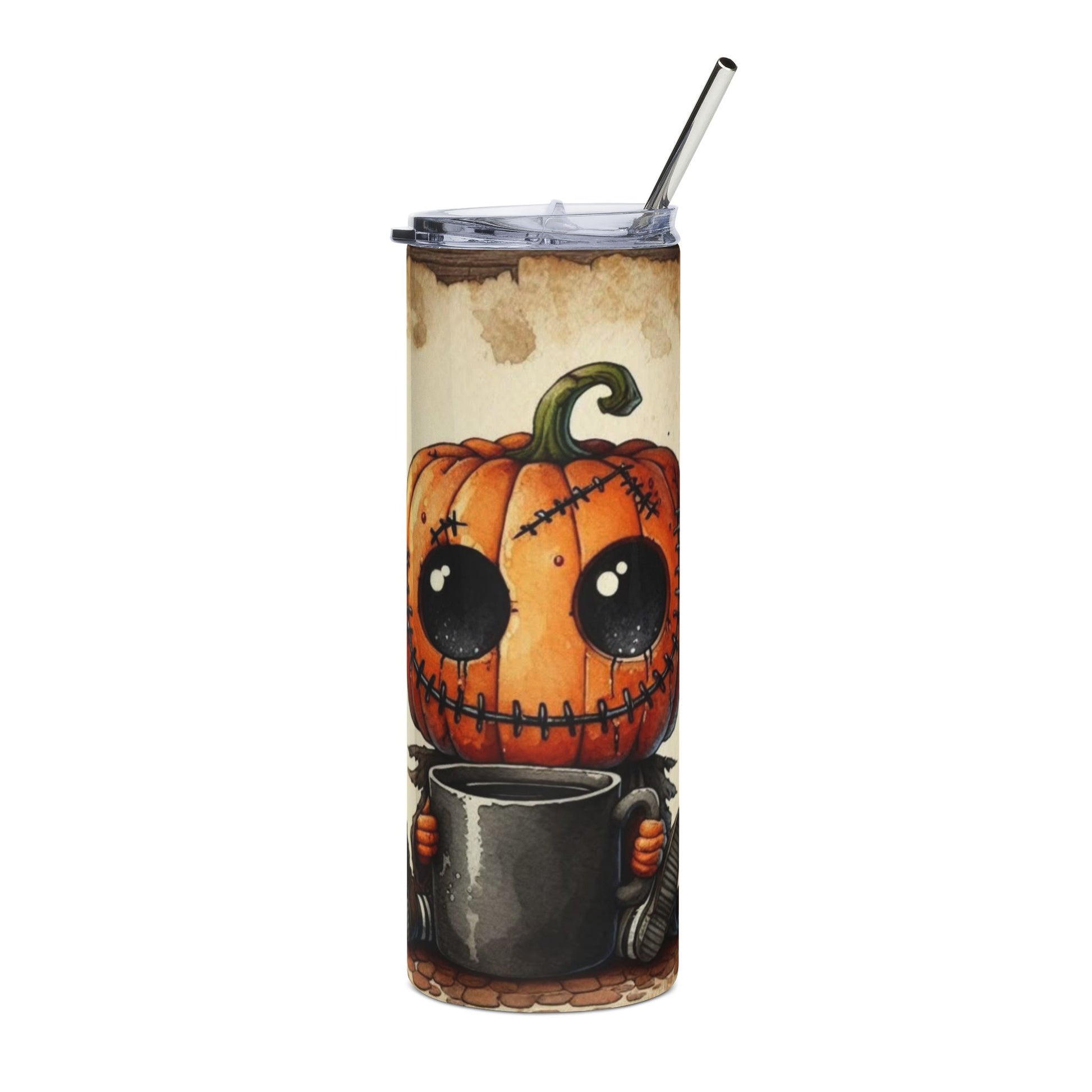 Fall-Themed Stainless Steel Tumbler, 20oz - Happy Fall Y'all Pumpkin and Autumn Leaves Design