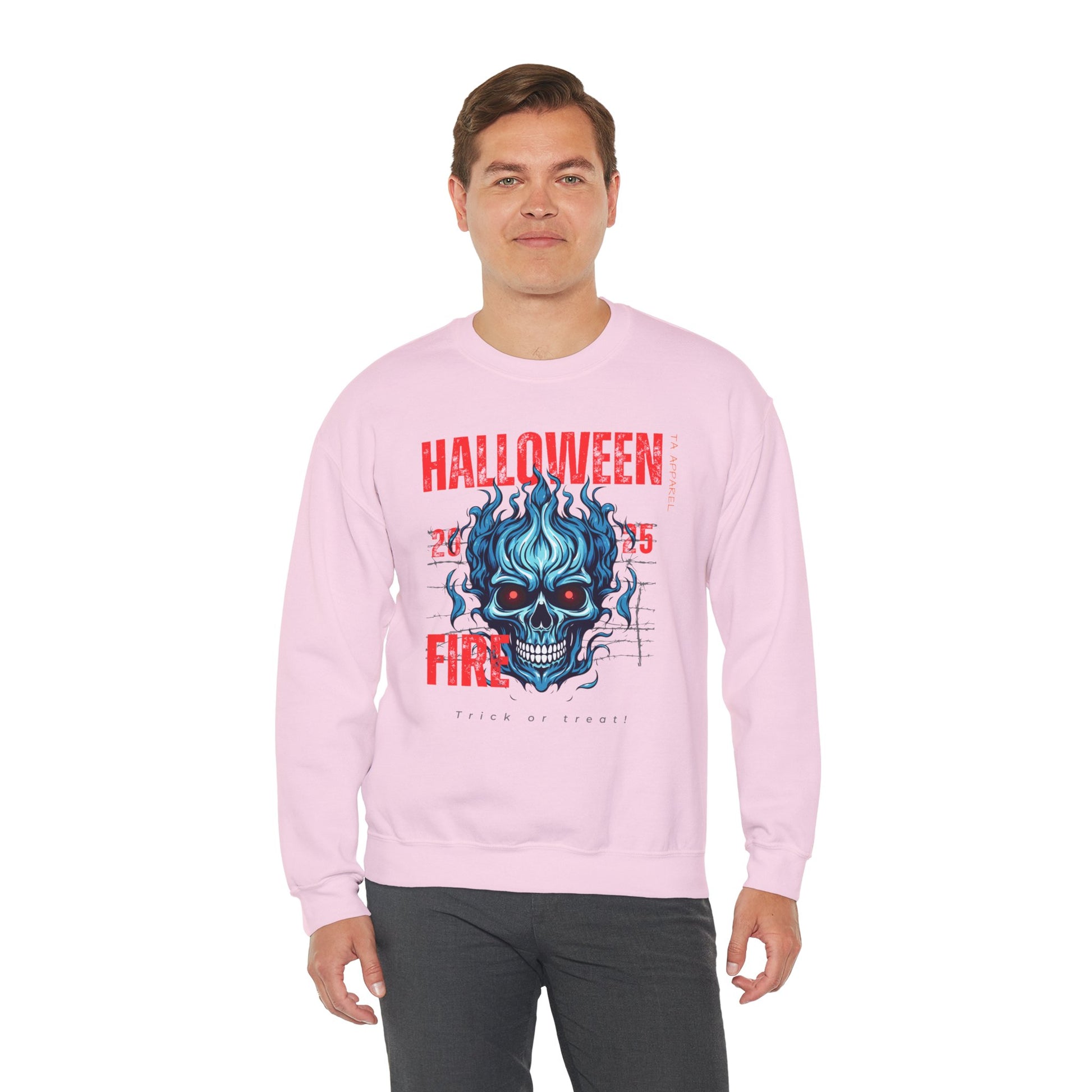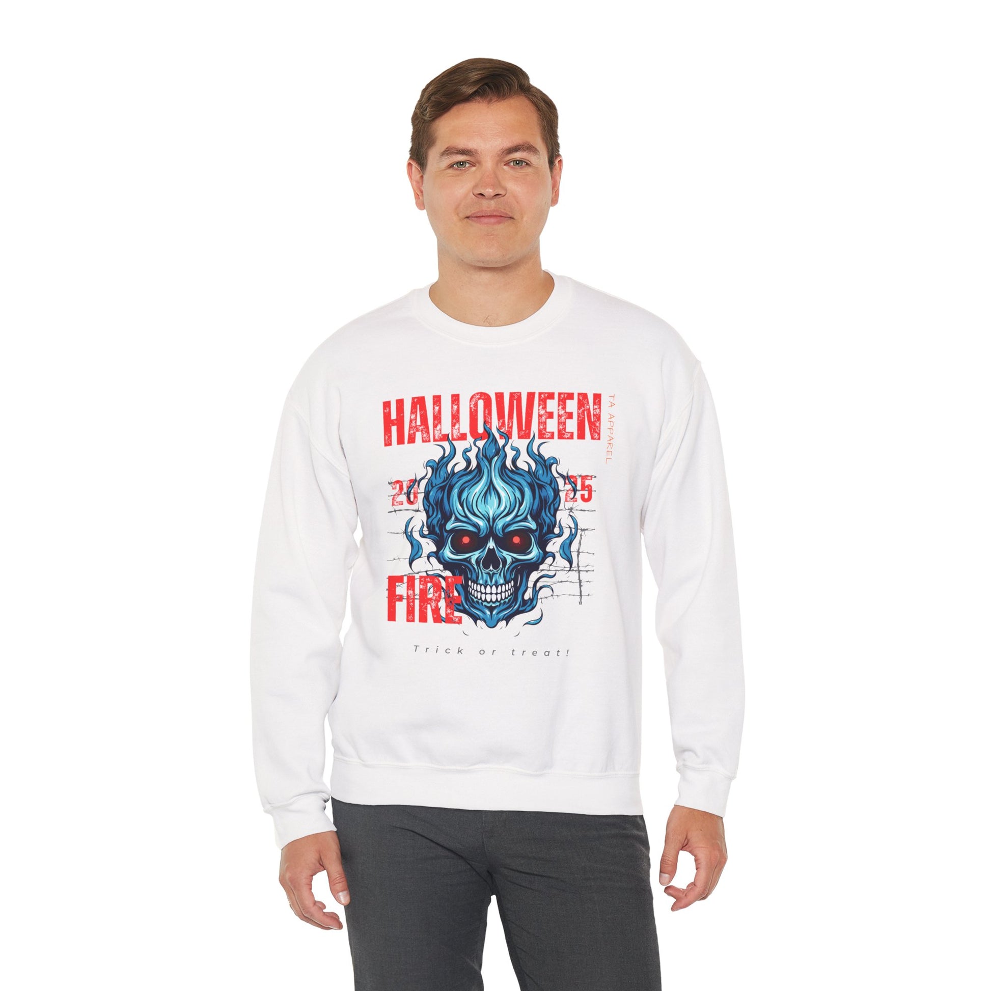 Halloween Fire Skull Sweatshirt, Unisex Crewneck for Fall, Spooky Season Apparel, Gift for Halloween Lovers, Cozy Awareness Top