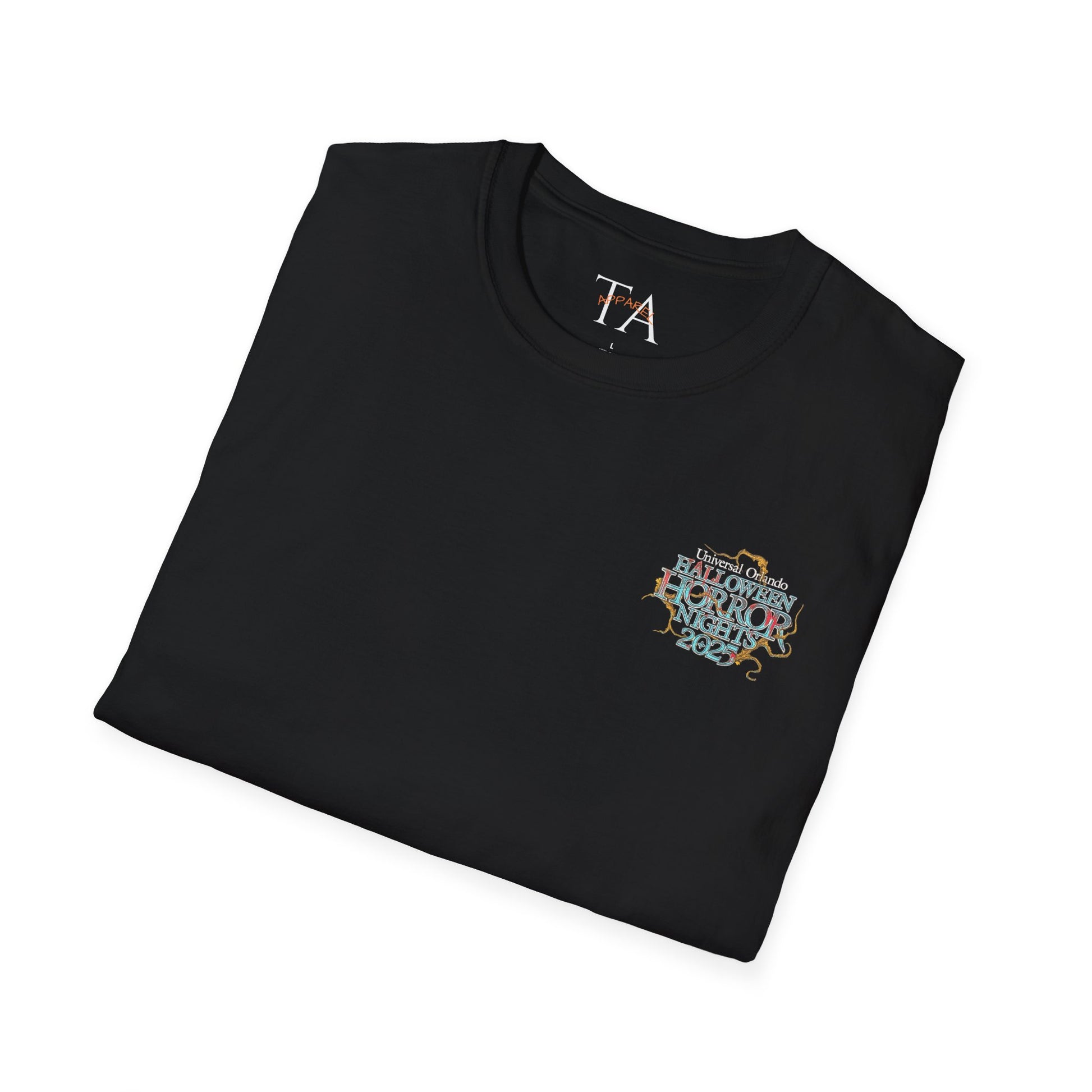 Halloween night design T-Shirt perfect for spooky festivities. Made from durable and smooth fabric, this shirt is comfortable to wear all year round. Ideal for adults looking to add a festive touch to their wardrobe during Halloween.