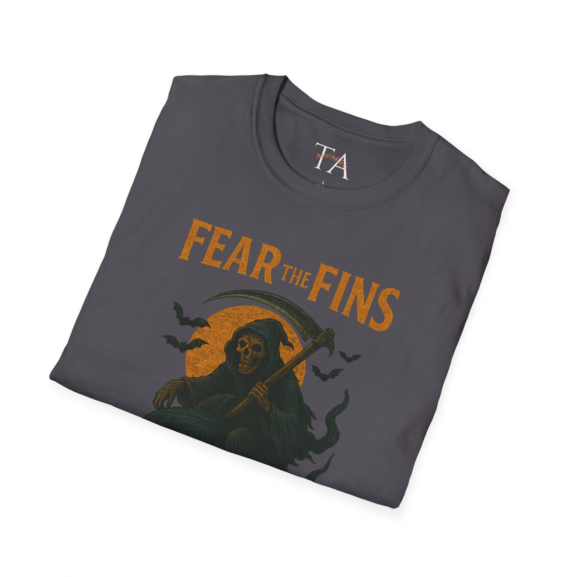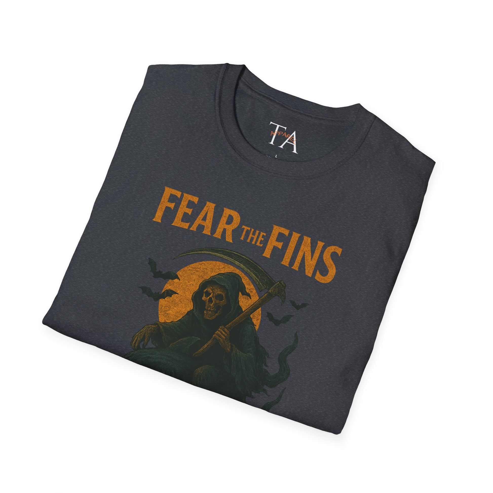 Miami Dolphins Halloween Unisex T-Shirt - Fear the Fins - Gifts for Ocean Lovers, Spooky Occasions, Casual Wear, Beach Parties, Horror Tee