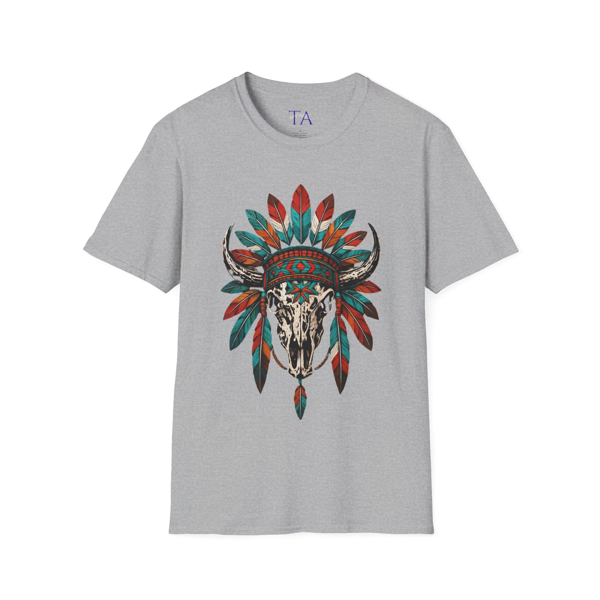 This Native American Bull Skull T-Shirt is a unisex tee perfect for festival wear and casual style. It makes a great gift for art lovers and is ideal for summer outfits. The soft and durable fabric ensures comfort while the classic fit with a crew neckline offers a versatile style for any occasion.