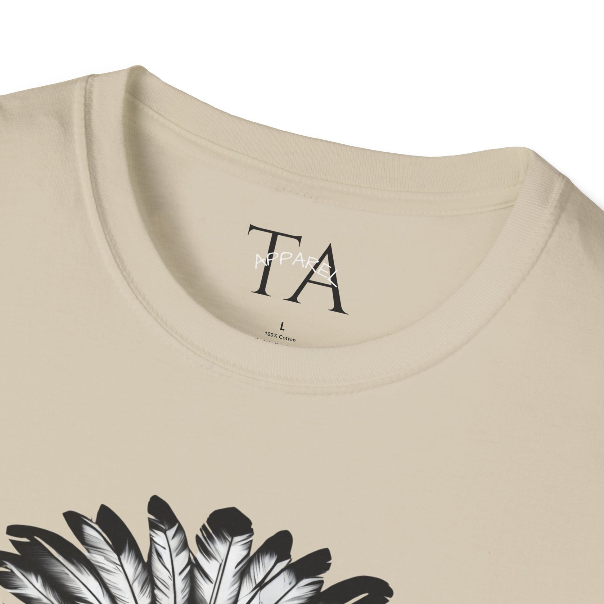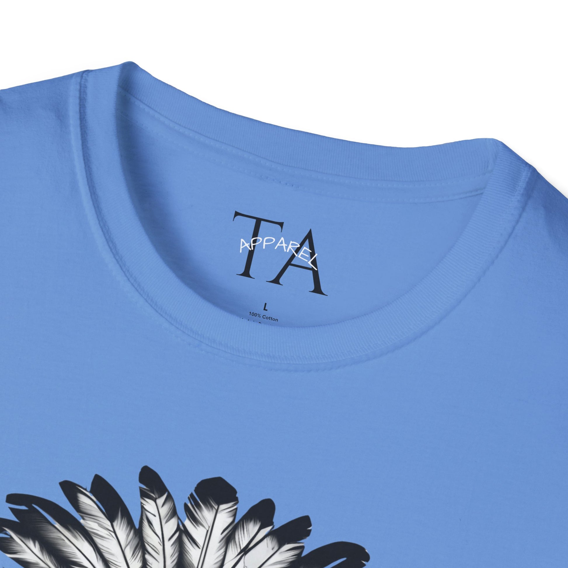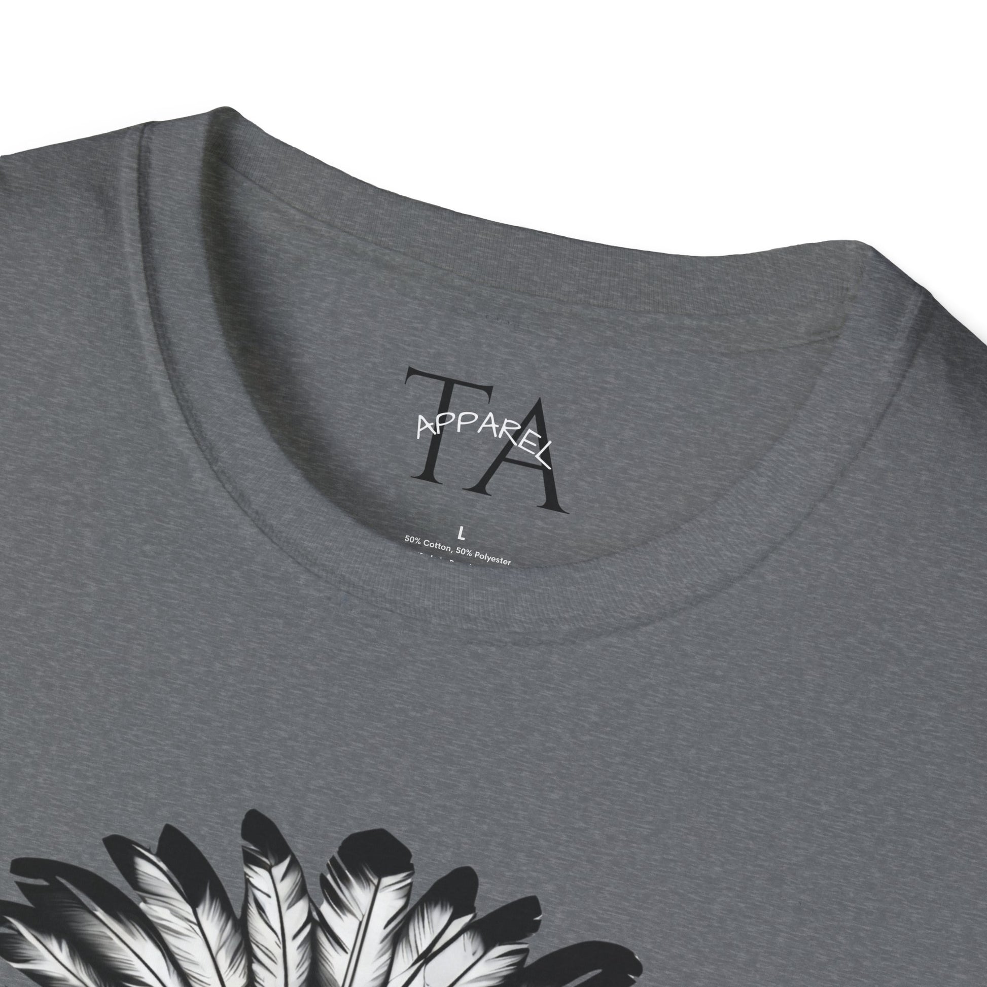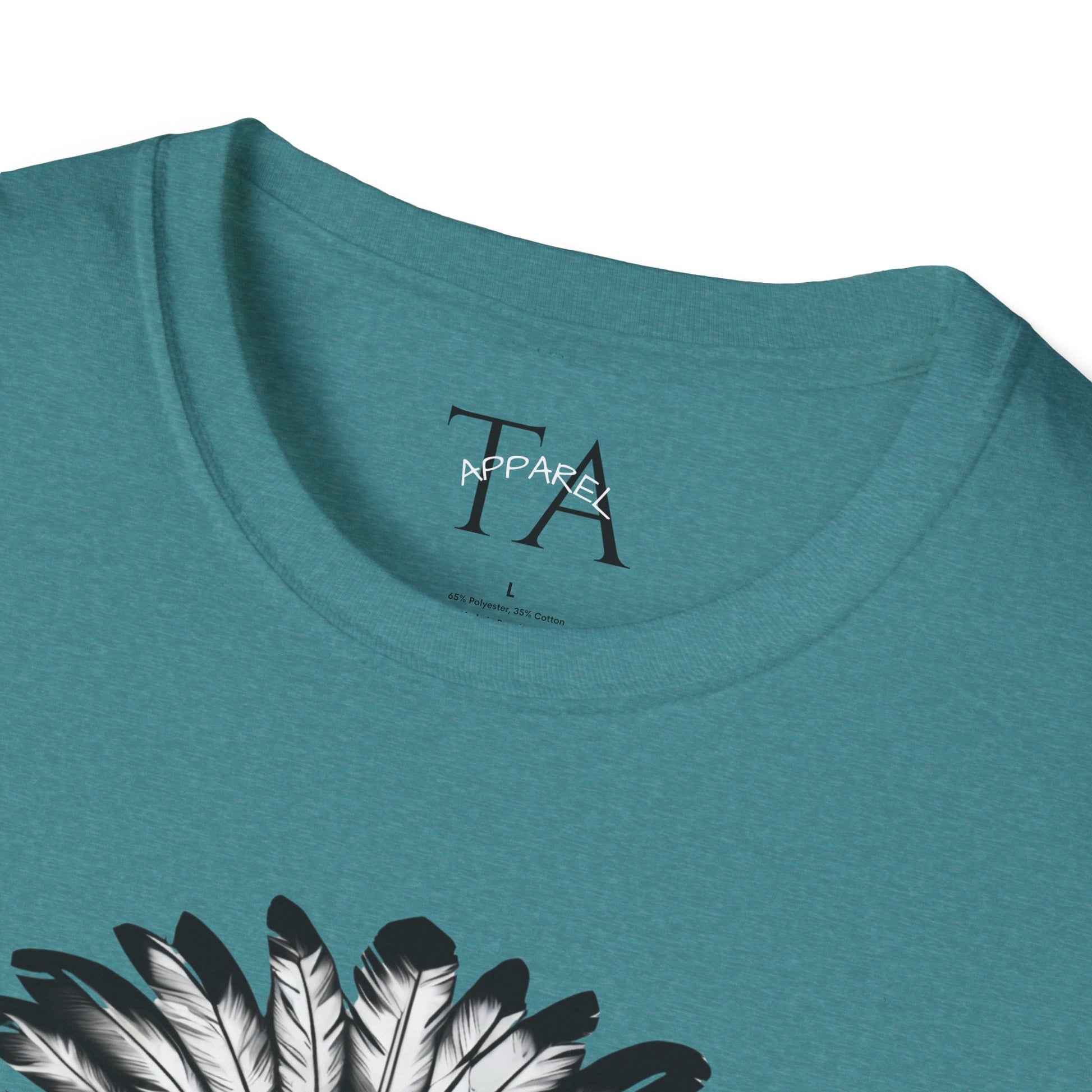 This Native American Skull Graphic T-Shirt is a versatile piece that can be worn as festival wear or as a casual streetwear style. Made from 100% ring-spun cotton, it offers a lightweight and durable fabric that is perfect for printing. The unisex softstyle tee features a classic fit with a crew neckline, making it suitable for any occasion. It is ideal for adults looking for a unique gift or a statement piece for their wardrobe.