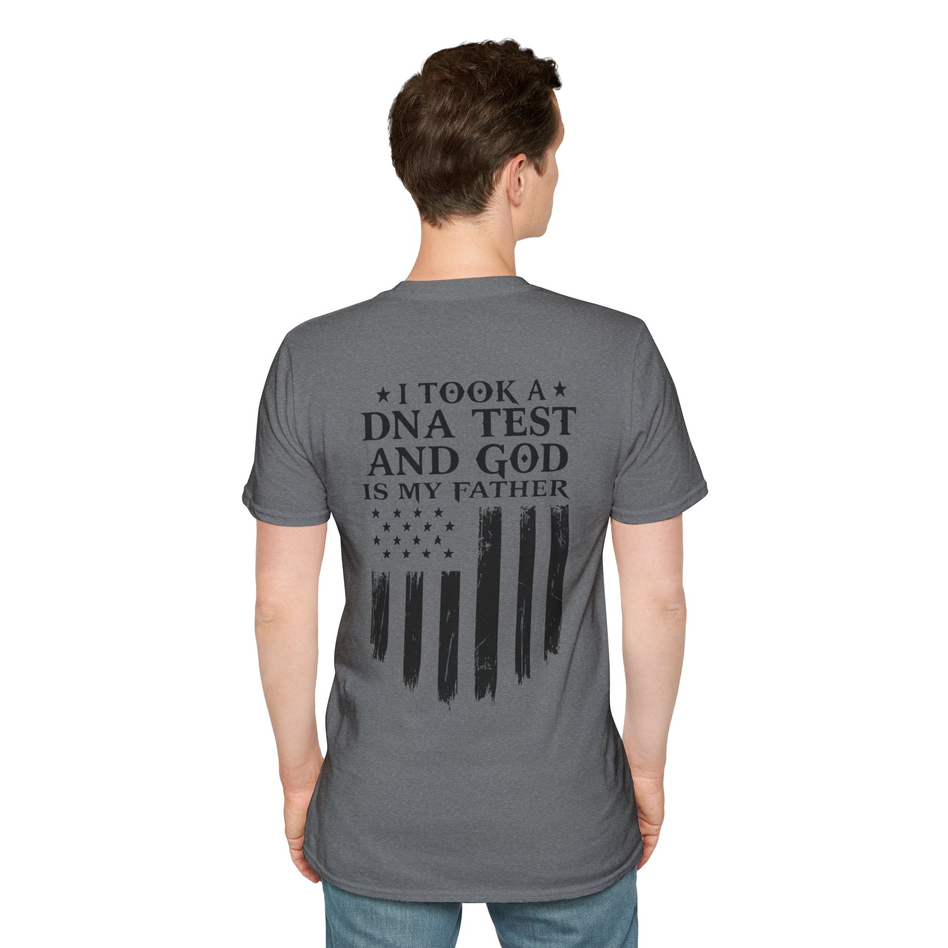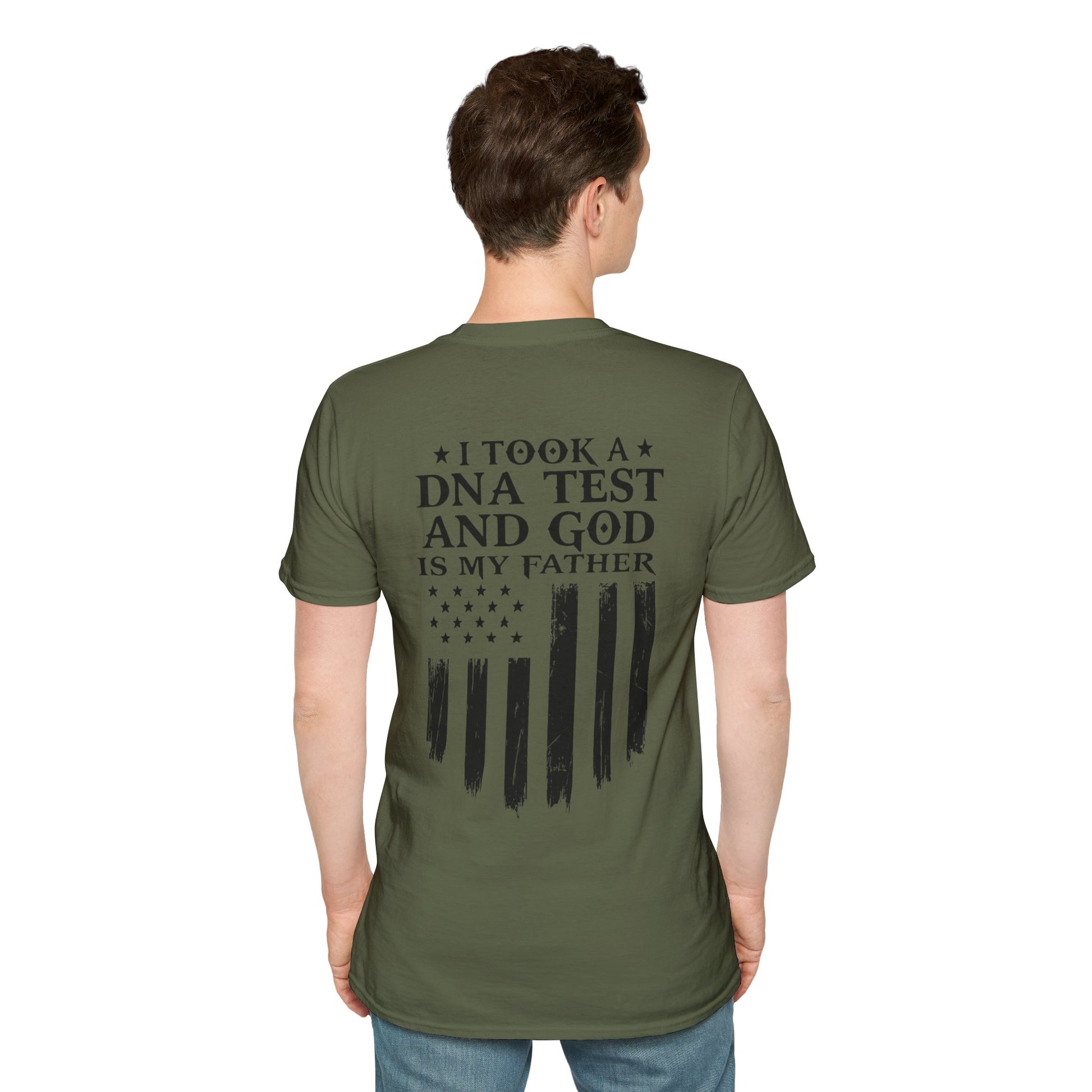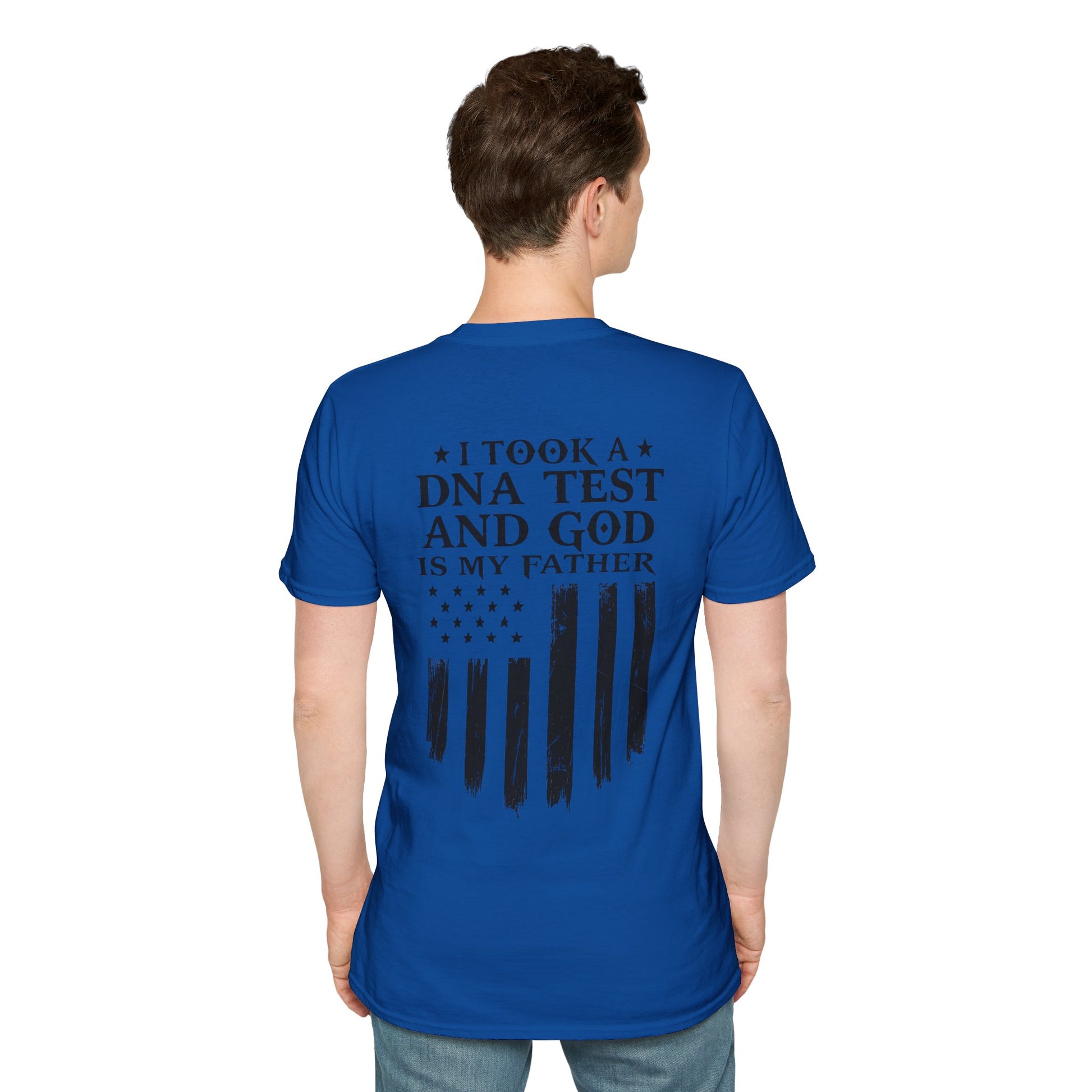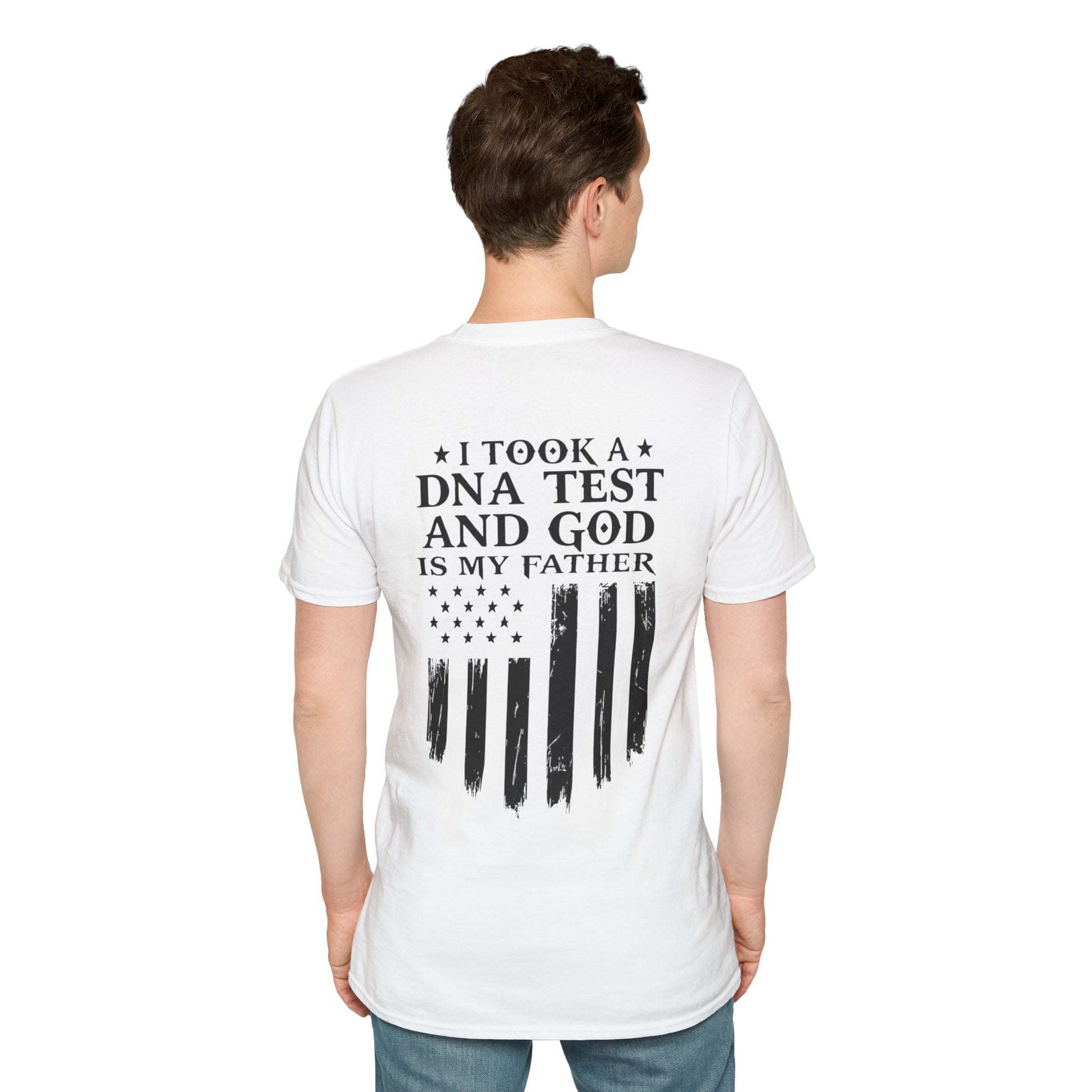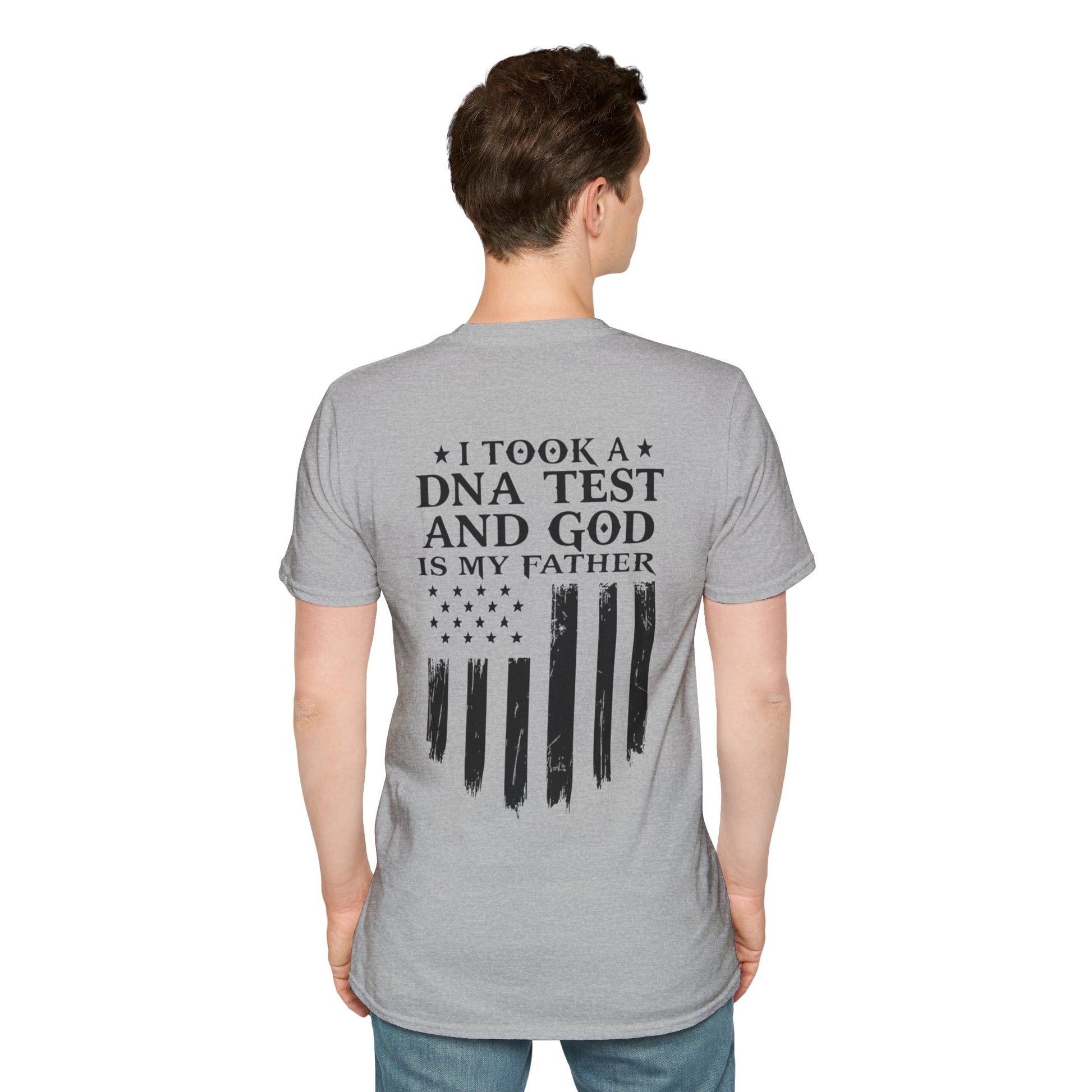 Patriotic DNA Test T-Shirt - Unisex Softstyle - I took a DNA test and GOD is my father