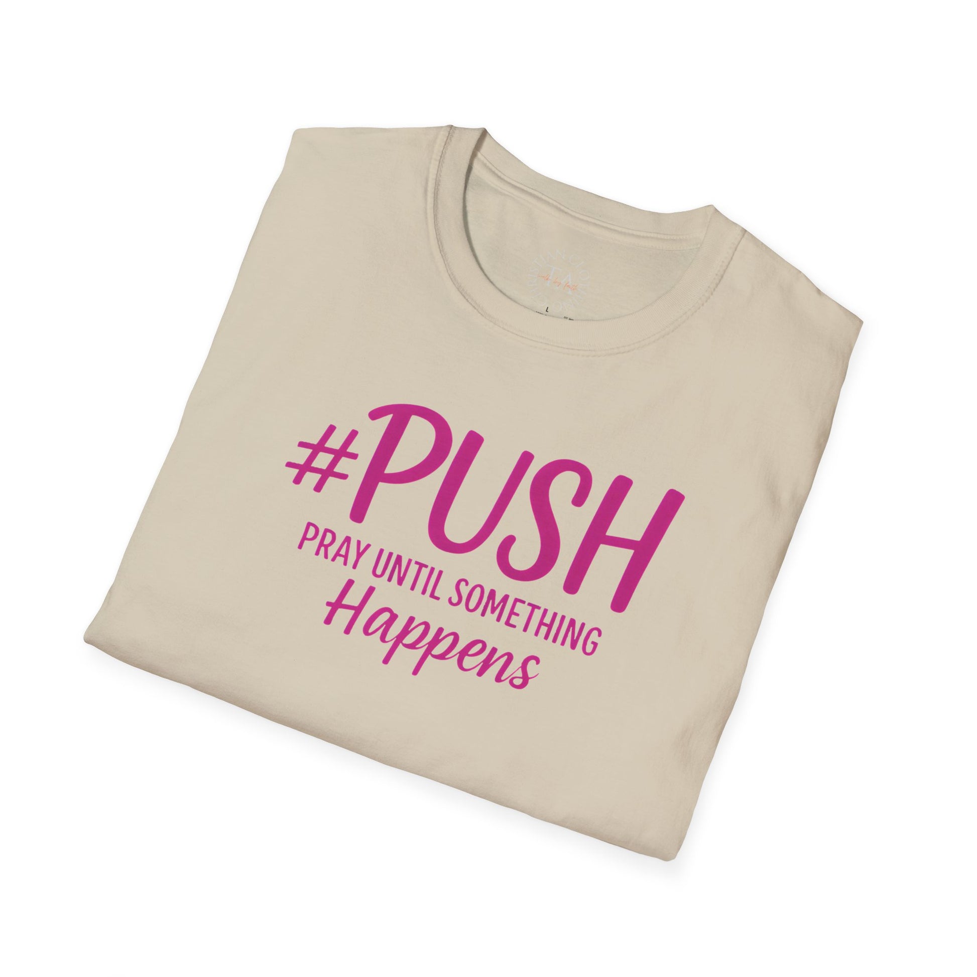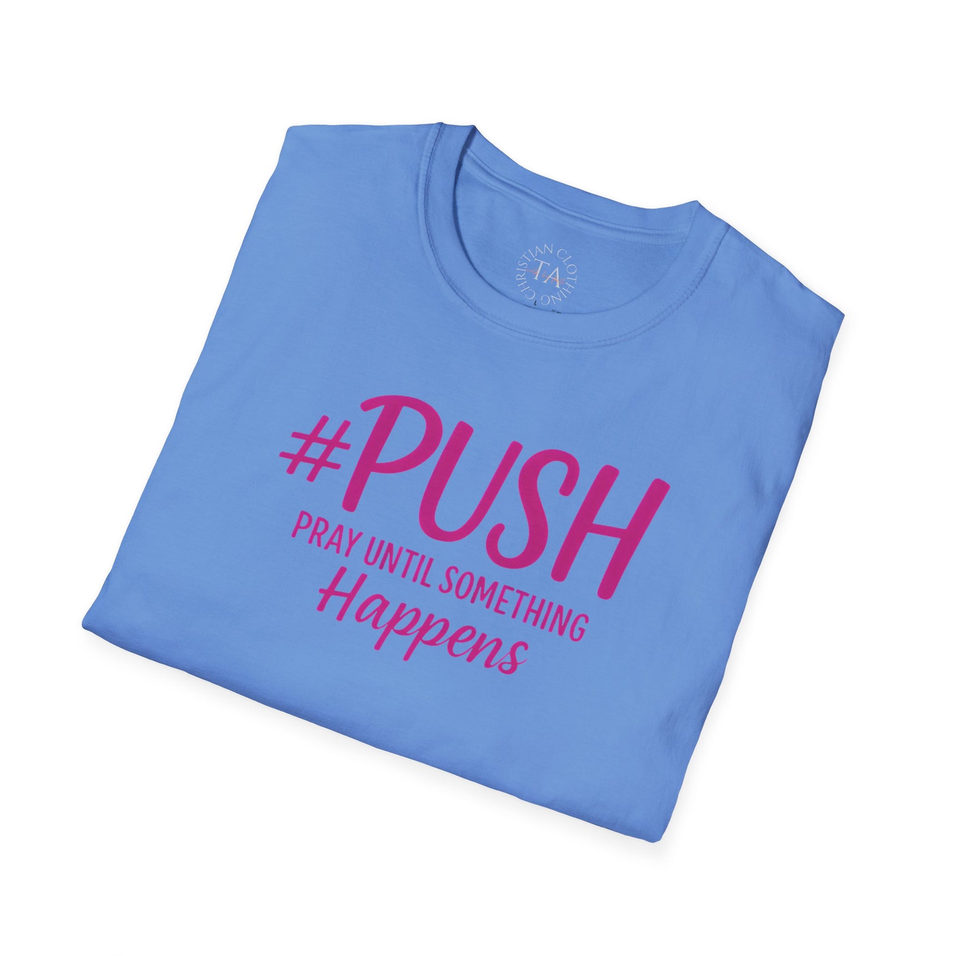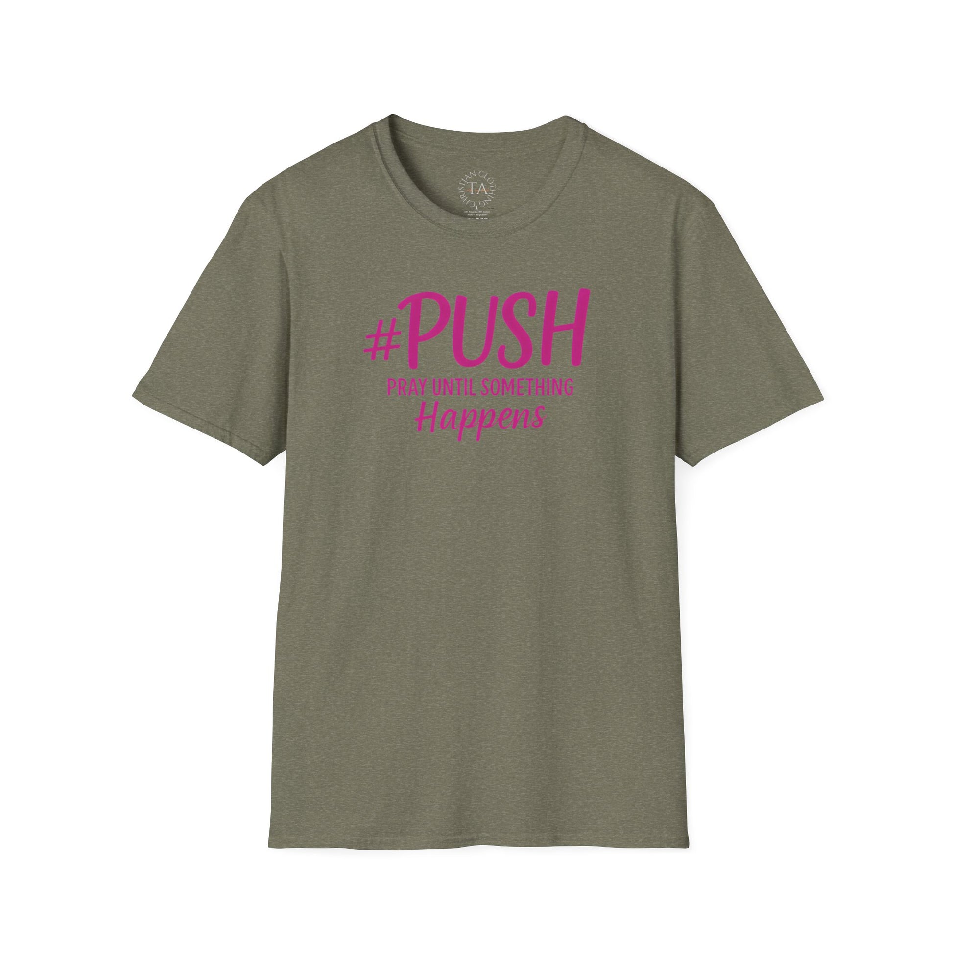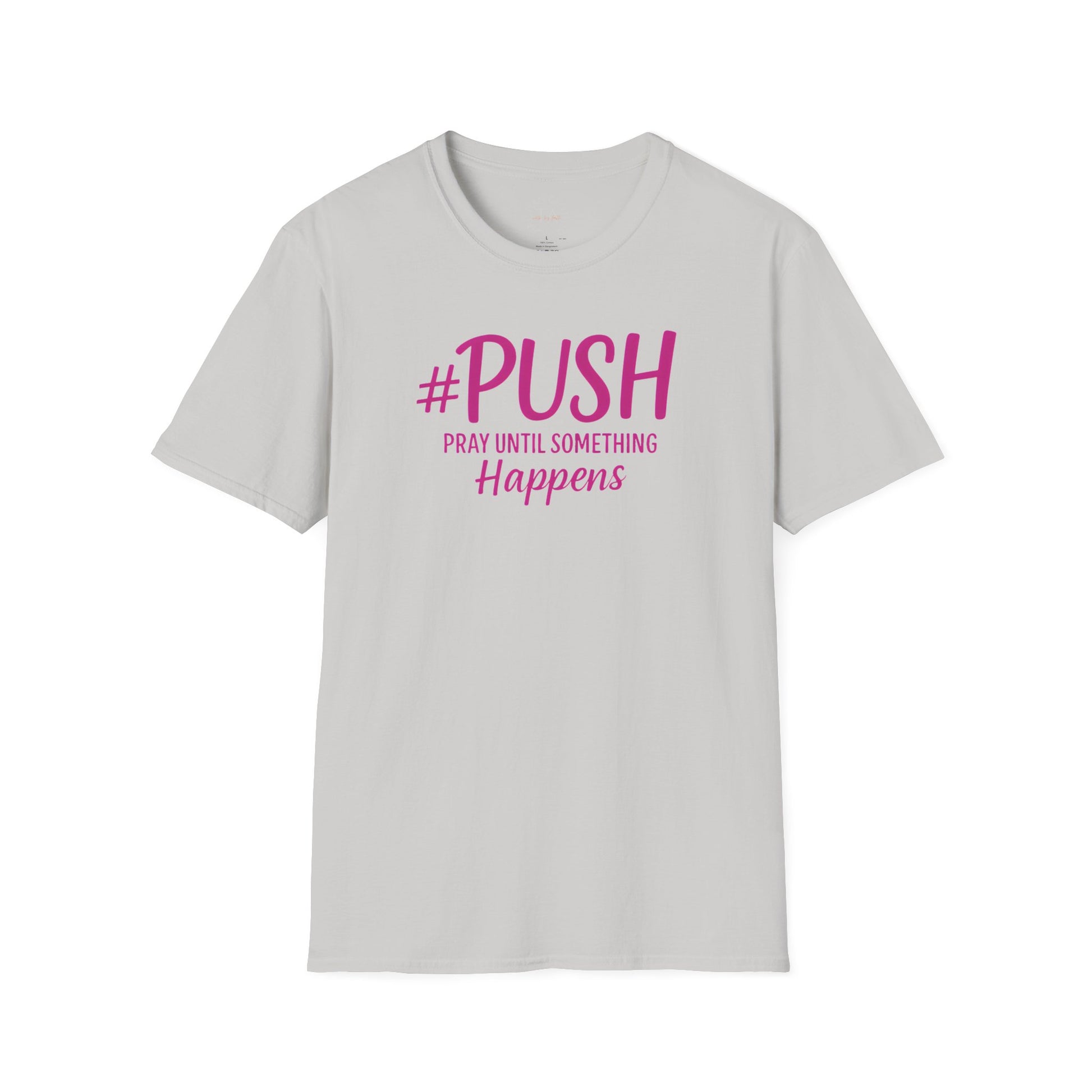 #PUSH Pray Until Something Happens - Inspirational T-Shirt for everyday wear, perfect for those seeking motivation and faith. Ideal gift for individuals looking for uplifting apparel. Suitable for adults, relevant for religious holidays and occasions.