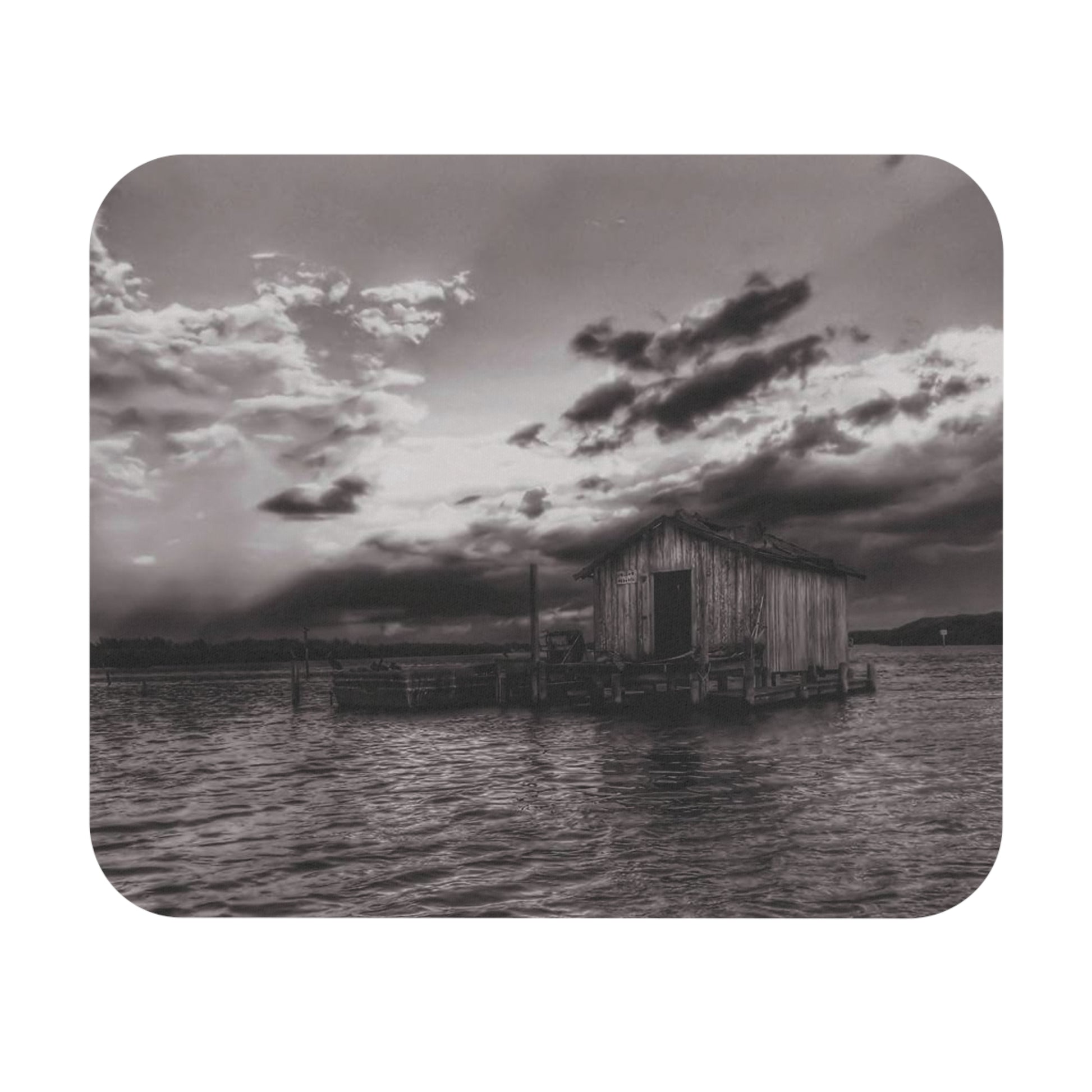 An ultra-thin, durable foam mouse pad featuring a relaxing house on the water design, creating a serene and tranquil atmosphere. Perfect for those looking to unwind and destress while working or gaming. Ideal for people who enjoy nature-inspired decor and need a calming touch to their workspace. Relevant for home office, back to school, and work-from-home celebrations.