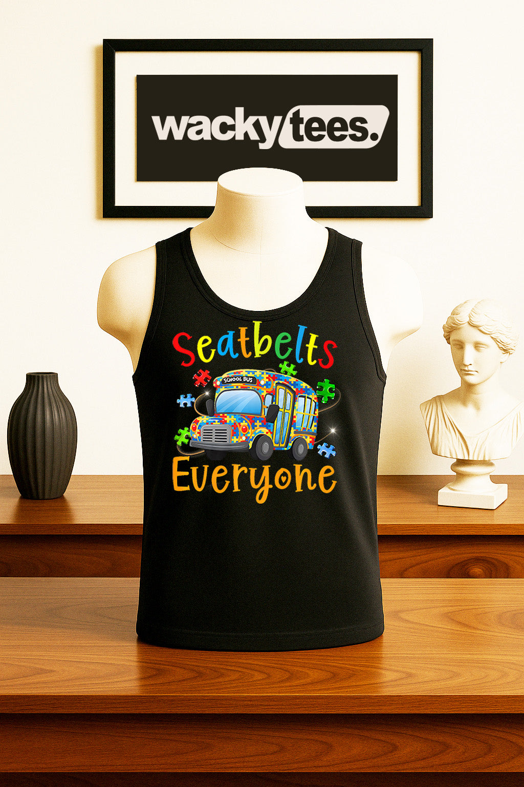 Seatbelts Everyone School Bus Autism Awareness Graphic Tee Shirt