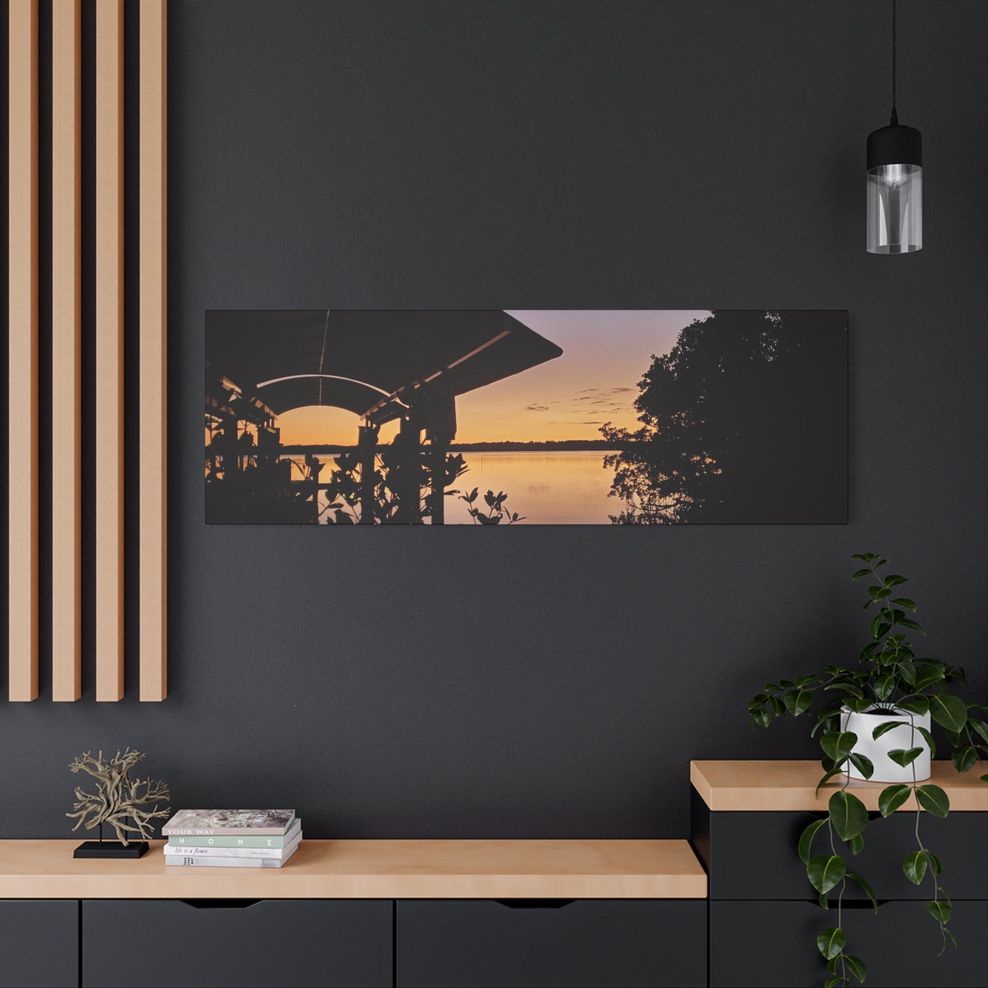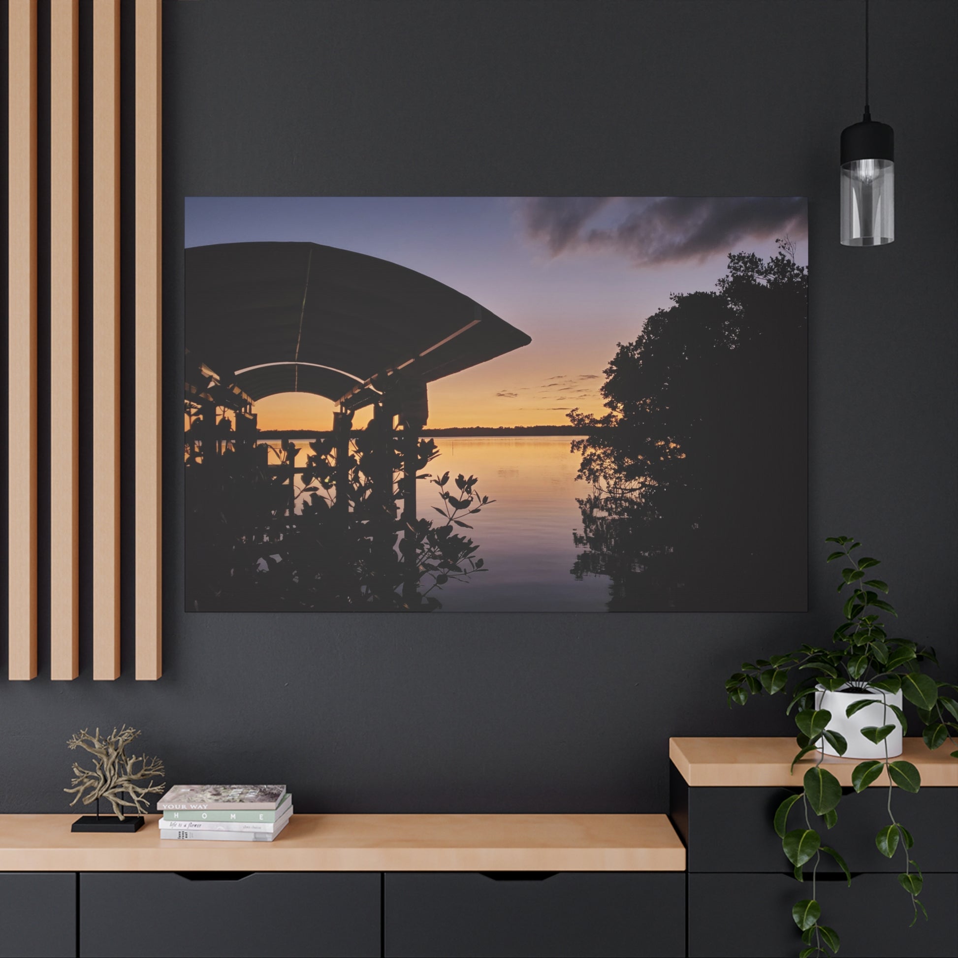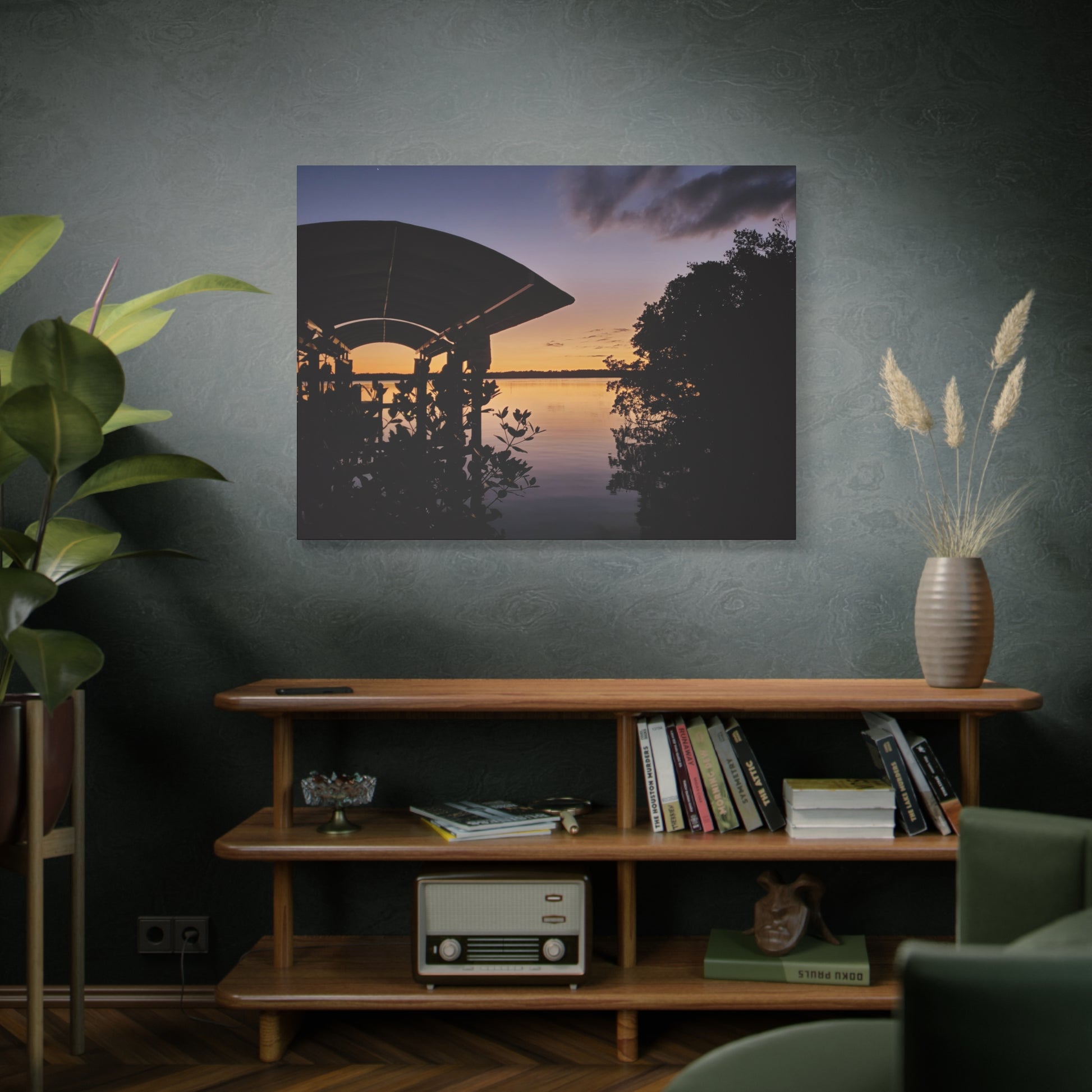 Bring the serene and vibrant sunset on the river into your home with this canvas print. Perfect for those who love nature and peaceful landscapes, this artwork will create a calming atmosphere in any room. Ideal for nature lovers, landscape enthusiasts, and those who appreciate the beauty of sunsets. Great for decorating homes, offices, and as a gift for birthdays, holidays, housewarmings, and more.