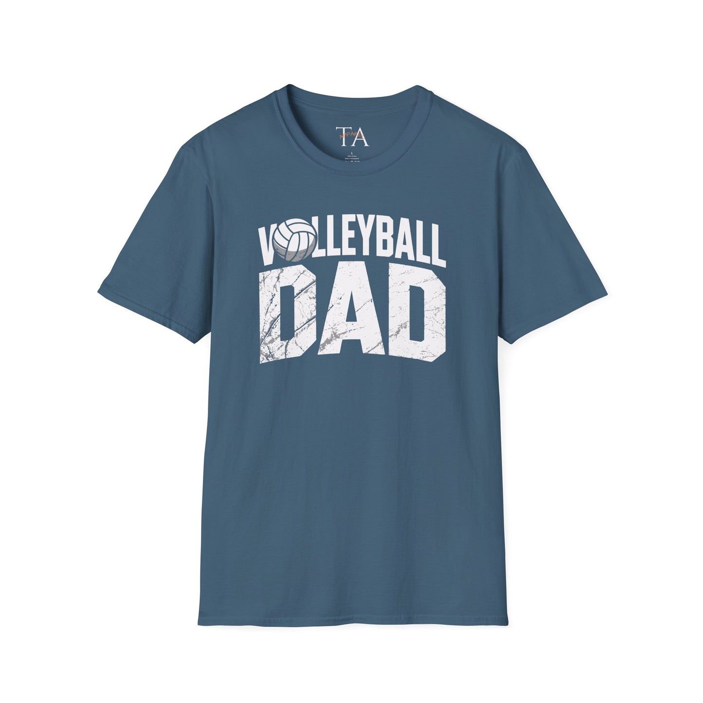 A distressed volleyball-themed T-Shirt perfect for volleyball dads. Add your player's number to personalize it. This shirt exudes a casual and sporty vibe, making it ideal for volleyball games and casual outings. It is relevant for Father's Day, sports events, and casual occasions.